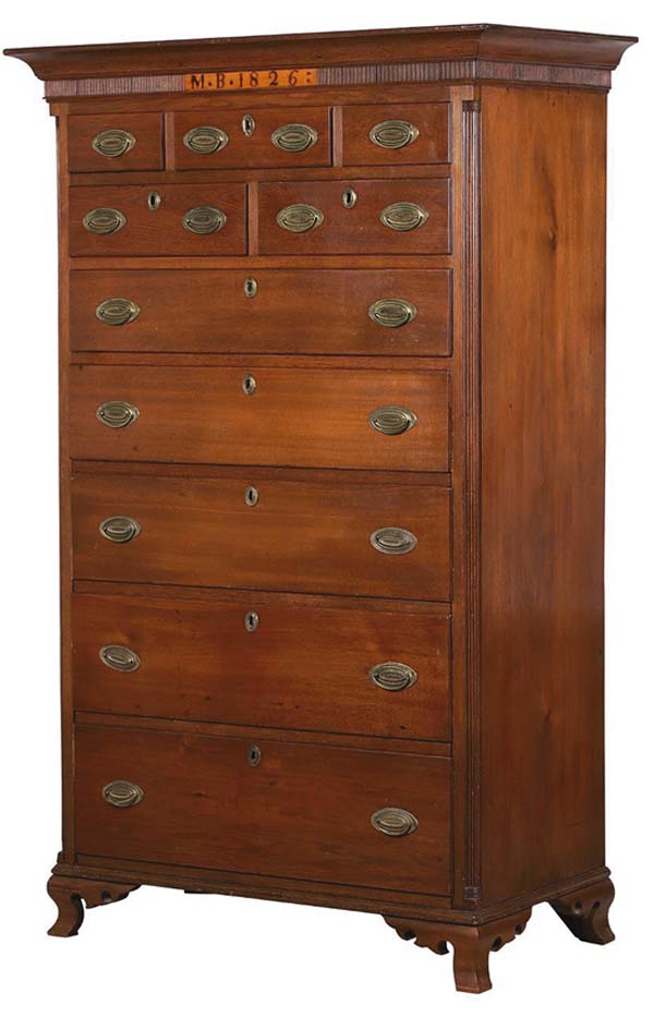 Outstanding antique Canadian furniture items and original artworks by acclaimed Nova Scotia artists Maud Lewis (1903-70), Joe Norris (1924-96) and Charlie Tanner all scored big in two days of online-auctions held Feb. 8 and 9 by Miller & Miller Auctions Ltd. In all, 399 lots came up for bid over the course of both sessions. The day one Select Canadiana Furniture, Folk Art, Textiles and Pottery Auction was packed with 325 lots of Canadiana, pottery and stoneware, textiles, art glass, and lamps and lighting. The day two Post-War Canadian Folk Art Sale was a smaller event, with just 74 lots of post-war Canadian folk art by Lewis, Norris, Tanner, Robert Wylie and others. The overall top performer was a late 18th/early 19th century Quebec arbalte dry scraped commode, which was featured in the book Les Meubles Anciens Du Canada Franais by Jean Palardy (p. 303, Plate 495). The antique form referred to as a commode had an estimate of $30,000-$50,000, but ended up changing hands for $70,800. All prices quoted in this report are in Canadian dollars and include an 18-percent buyers premium. A tall walnut chest of drawers from Waterloo County, commissioned as a wedding gift by Samuel Bricker (1776-1868) to his eldest daughter, Mary, blasted through its $6,000-$8,000 estimate to finish at $35,400. The chest, in very good condition, was illustrated in the book A Provincial Elegance. The Bricker chest offered on Saturday sparked a national news story that set the tone for the whole day, said Ethan Miller of Miller & Miller Auctions Ltd. Quality Canadiana and folk art are very much in demand. We had many new faces, and the diehards. Two days later, I can still feel the afterglow. Maud Lewis is no stranger to Miller & Miller auctions. Many of her vibrant and colorful paintings have been featured in prior sales, always with strong results. This sale was no exception, as several of her oil renderings came up for bid and outperformed estimates. They included Three Black Cats ($44,840) and Harbour Scene with Cape Islanders ($24,790). Joe Norris also made multiple appearances in the auction, as he has, too, in prior Miller & Miller sales. The top achiever was an enamel-on-board titled Pulling the Boat Up. The story of this painting likely took place in the coastal village of Lower Prospect, Nova Scotia. It brought $30,680. A painted wood folk carving by Charlie Tanner, titled Family Group, a boldly carved and colorful work, and artist signed, easily blew past the $5,000 high estimate and realized $24,780. It portrayed an interaction among Tanners iconic bulbous figures: a woman holding a child in one arm while also holding the hand of her daughter, plus the family dog and a cat. On Sunday, explosions from Tanner, Norris and Lewis exposed the passion behind the purchases, remarked Miller. It was an exciting weekend. The auction grossed $1,106,928. A total of 895 online bidders placed a combined 12,310 bids. Over 65 percent of the top 50 lots exceeded estimates both days. Online bidding was provided by LiveAuctioneers.com and the Miller & Miller website (MillerandMillerAuctions.com). Phone and absentee bids were also accepted. A 19th century Stahlschmidt roll-top desk (the Canadian version of the American Wooten desk), an exceptional office desk made in Preston, Ontario, by W. Stahlschmidt & Co., had a high estimate of $5,000, but bidders pushed that to a selling price of $25,960. The desk was in very good condition, with original hardware and a brass plaque on the front edge. A ca. 1880 Ontario schrank (German for wardrobe or cupboard), in original paint, the upper panels bearing the initials J and K for the famed maker John Klempp (1857-1914), a hotel proprietor and cabinetmaker known for his inlaid furniture from 1870-90, in excellent, untouched condition and beautifully crafted in pine, found a new home for $25,960. A late 19th century folk art quilt top with Adam and Eve at the center, standing on either side of the tree with the forbidden fruit, as two birds fly above and a serpent lies below, 192 inches square, fetched $18,880 against a high estimate of $3,000. The Ontario-made quilt had hand-stitched appliqus and crazy quilt style stitching. Undoubtedly the top sleeper lot of the two days had to be the Eastern Ontario sampler dated 1848, drawn and executed by Agnes Wallace at 8 years of age. In strong colors with multiple images and identified animals surrounding a red brick Georgian house, the 12-by-17 inch (minus frame) sampler brought $32,450 against a high estimate of just $1,500. On the second day, an 1988 acrylic-on-canvas by Ted Harrison (England/Canada, 1926-2015), titled Japan, Harrisons interpretation of the Japanese culture, realized $17,770. Through bold colors and dramatic landscapes, Harrison achieved harmony between tradition and modernity, as well as nature and the human spirit. The 24-by-36-inch work was artist signed and inscribed. A monumental mid-1980s painted wood carving of Noahs Ark by Robert Wylie (Thomasburg, Ontario) rang up $15,340 against a high estimate of $6,000. This was considered the artists masterpiece. It totals 35 pieces, including 15 sets of animals. For more information, email info@millerandmillerauctions.com or visit www.MillerandMillerAuctions.com.