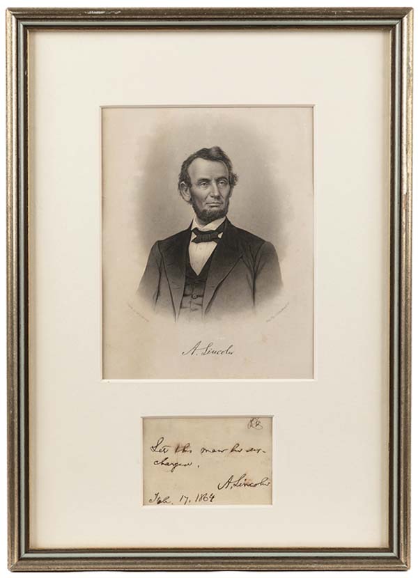 Americana And Historical Memorabilia Event Delivers Abraham Lincoln (1809-1865) Signature And Engraved Portrait Sells For $11,875