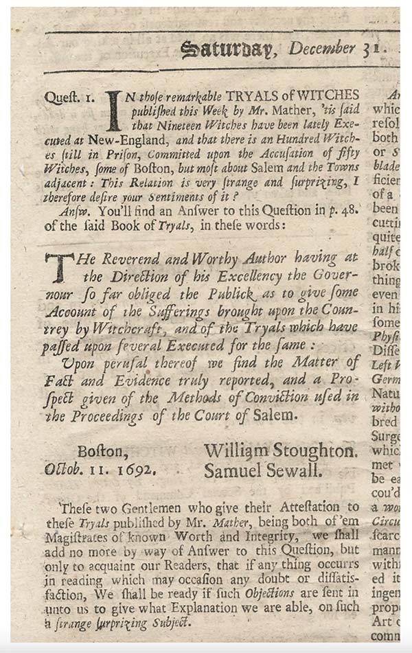 Potter & Potter Auctions announced the results of its 426-lot event specializing in Historical Memorabilia held on Feb. 5. The auction had a 92 percent sell through rate. All prices noted include a 20 percent buyers premium. The top lot was a George Washington (1732-1799) clipped free frank signature. Estimated at $4,000 to $6,000, it delivered $12,000. The signature swatch measured 1.625 by 3 inches, and was framed under glass together with a silk ribbon commemorating the U.S. Centennial. The ribbon read 1776 1876 Centennial/USA/The Father of our Country/George Washington/The First in Peace/The First in War/The First in The/Hearts of His/Countrymen/Philadelphia 1876. Another top political lot was a framed Abraham Lincoln (1809-1865) signature and engraved portrait, estimated at $3,000 to $5,000, selling for $11,875. This example was double matted, measured 14.25 by 10.25 inches overall. It was inscribed, signed, and dated in ink Let this man be dis-charged. / A. Lincoln / Feb. 17, 1864. The portrait was an engraving by J.C. Buttre, N.Y., from a photograph by M.B. Bailey. A 19th-century fractional currency shield was estimated at $1,000 to $2,000 and made $4,250. This 32-by-28.5-inch matted and framed example had an engraved backing, with mounted specimen notes in various denominations between three and 50 cents. These shields were produced by the U.S. Treasury Department and were used to help banks detect counterfeit currencies. The Athenian Mercury Vol. 9 Number 6 from 1692 was estimated at $500 to $700 and delivered $3,840. It was printed in London for John Dunton at the Raven Pultrey. This publication featured an advertisement for Cotton Mathers book on witch trials at the start of column one on the front page. It noted, in part, In those remarkable TRYALS OF WITCHES published this week by Mr. Mather, tis said that Nineteen Witches have been lately executed at New-England, and that there is an Hundred Witches still in Prison, Committed upon the Accusation of fifty Witches, some of Boston, but more about Salem and the Towns adjacent: This relation is very strange and surprizing, I therefore desire your Sentiments on it? Presidential autographs were a high point in the auction, and with the semiquincentennial approaching, it was not surprising to see Washingtons signature as the top lot of the day, according to Joe Slabaugh, Potter & Potter Auctions director of cataloging. For more information, visit www.potterauctions.com.