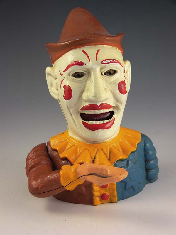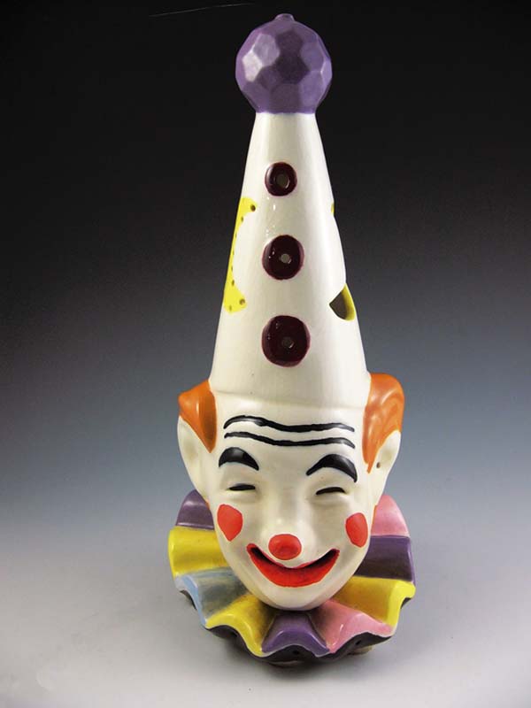 Be a Clown! Be a Clown! All the world loves a Clown! Cole Porter, 1948 OK, maybe not all the world. If memories of Pennywise, the evil clown in Stephen Kings It, still have you shuddering, then you and Cole Porter might find yourselves at odds. For everyone else, those brightly painted faces, big red noses, multicolored costumes, and oversized shoes mean good times are on the way! Circuses. Carnivals. Parades. All sorts of charity events. If it seems like clowns are everywhere, well, they are. And theyve been hopping out of those little cars and spreading their particular brand of joy for ages. The first clowns entertained the imperial courts of Egypt (2400 B.C.) and China (1000 B.C.). In some early societies, court clowns even served a triple purpose, as funnymen, magicians, and religious figures. By the time clowning made its way to the theatres of ancient Greece and Rome, the clown characterization had evolved to that of a country bumpkin. And, while court jesters amused royalty with their antics (not to mention those jingling caps and shoes) during the Middle Ages, Shakespeares Fools in his Elizabethan plays, brought bumpkins back to prominence. Hmmm. These dont sound much like Bozo, do they? Where was the whiteface? The wild wig? Enter Joseph Grimaldi. In the early 1800s, Grimaldi took the London stage by storm. His costumes were a bizarre mix of colors. His face was plastered in white, accented by red cheek highlights. The wig was there, too. Not carrot-y like Bozos, but a blue Mohawk. He did high leaps and headstands. He sang, and offered impersonations. He even presented a boxing match, with himself! Viewing Grimaldis success, other clowns quickly slapped on the whiteface, pulled on the baggy pants and wigs, and climbed aboard the circus wagon. Clowning was no longer just the filler during the main event. Thanks to Grimaldi, clowning now was the main event. By the mid 20th century, no circus was complete without a clown (or better yet, a whole car full of them). Modern clowns came in many types. There were tramp clowns like Emmett Kelly and Charlie Chaplin. Rodeo clowns. Sophisticated whiteface clowns like Frosty Little. Much less sophisticated whiteface clowns like Bozo and Ronald McDonald. Heres an interesting clown fact: did you know that weatherman Willard Scott once played both Bozo and Ronald McDonald? And, of course, there were evil clowns, from Pennywise to Batmans The Joker, eager to scare us silly. (Theres even a name for clown fright: its coulrophobia.) But regardless of type, audiences loved clowns, and so did artists. The no-holds-barred nature of colorful clown makeup and costuming meant no-holds-barred artistic interpretations of clowndom. There were ceramic clowns, glass clowns, tin, pot metal, plastic, marble, and plaster clowns. And, since clowns could do almost anything onstage, so could clown figurines. Clowns were posed banging drums, roller skating, twirling canes, riding bikes, and riding piggyback. But why stop at just static poses? There were so many helpful functions a clown could perform. Among the many: clown banks, juicers, decanters, ashtrays, salt-and-peppers, mugs, napkin rings, spoon rests, tea sets, cookie jars, planters, vases, egg cups, table lamps, and lighting fixtures. Although many clown figurines were imported or unmarked, some design names celebrated red noses, including Shawnee, McCoy, Royal Copley, Royal Halburton China, Royal Doulton, and Murano. Prices remain something to smile about, ranging from $15 to $100, with works by those names on the higher end. Since most clown figurines were mass-produced, their grinning faces often turn up at estate sales, auctions, antique shops, and online. Youll find them all definite day-brighteners (well, maybe not Pennywise). And always remember: If you become a doctor, folksll face you with dread! If you become a dentist, theyll be glad when youre dead! Youll get a bigger hand if you can stand on your head! Be a Clown, be a Clown, be a Clown! Cole Porter, 1948 Clown collectibles courtesy of Mark Dickmeyer. Photo Associate: Hank Kuhlmann. All photos by Donald-Brian Johnson. Donald-Brian Johnson is the co-author of numerous books on design and collectibles, including Postwar Pop, a collection of his columns. Please address inquiries to donaldbrian@msn.com.