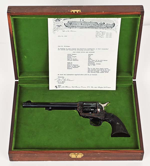 Milestones Spring Premier Firearms Auction featuring 1,187 hand-selected lots is a virtual arsenal of fine-quality antique and vintage productions from the most sought-after American, European and Japanese arms manufacturers. The Saturday and Sunday, March 22 and 23, sale will be held live at Milestones suburban-Cleveland gallery, with all forms of remote bidding available, including absentee, phone or live via the Internet through a choice of bidding platforms. An overview reveals sporting shotguns and rifles from revered brands including Winchester, Beretta, Remington, Browning, Parker Brothers, Sako, Ithaca, Marlin, Savage and more. Military weapons traverse a 250-year period starting with the American Revolutionary War era and concluding with the Vietnam War. In between, there are Civil War weapons, guns of the Old West, including a very fine Model 1865 Indian Wars Spencer Carbine, and an impressive selection of World War II American, Nazi German, and Japanese arms, led by a very rare set of four Type 14 Nambu pistols. The timeline concludes with modern handguns, including a coveted 1983 Colt Python/Diamondback Bankers Set, plus many engraved Colt, Smith & Wesson and Remington guns. A bonus category, early firearms advertising, is highlighted by a fantastic Winchester Double W cartridge board. Prized Colts from throughout the legendary Connecticut companys 170-year history will be up for bid. A near-mint Colt Frontier Six-Shooter Revolver, .44-40 WCF, was manufactured in 1878 and is nickel-plated with one-piece walnut grips. According to the accompanying Colt Archive letter, the gun was shipped in March 1878 to Spies Kissam & Co., a respected New York firm that would order blued guns from Colt and apply nickel directly over them. However, the guns were never buffed or finished after the nickeling process. As Milestones co-owner Miles King explained, There was a time during the 1800s when it was very difficult, if not impossible, to order nickel-plated revolvers from Colt. The nickel was more durable and popular, so New York companies like Spies Kissam filled a need by nickeling guns that came to them directly from Colt. In excellent overall condition, the auction example is nearly 100 percent bright and retains its original Spies Kissam nickel. Its near-mint original panel is etched Colt Frontier Six Shooter, and its serial numbers appear in the proper locations, including the cylinder. A Civil War Colt Model 1860 Army Revolver, manufactured in 1863, is a .44 caliber gun, serial-numbered 90850, with matching numbers on the bottom of revolver and cylinder. Colts single-line New York address is shown on the barrel. Graded in VG condition, its action works and its bore is shiny and clean. The auction also includes many Colt firearms beautifully embellished with the work of noted engravers. A third-generation Colt .45 Single Action Army Revolver, manufactured in 1982, was enhanced the following year by Master Engraver Howard Dove. It is distinguished for being the first SAA Dove ever engraved and is signed Howard M. Dove Engr under the right side of the grip. Its accompanying Colt factory letter confirms that the engraving was executed per a factory work order. Moving into the WWII category, one of the special highlights is a rare set of Japanese Type 14 pistols, chambered 8x22mm Nambu. As explained by Miles King, One pistol was issued per month between January and June of 1945, culminating in a complete set. Their design was influenced by, and uses the same type of locking mechanism as, the Mauser C96. Each pistol is serial-numbered. Milestones gallery is located at 38198 Willoughby Parkway, Willoughby, Ohio. Start time will be 10 a.m. ET on both days. For additional information, call 440-527-8060 or email info@milestoneauctions.com. All images courtesy of Milestone Auctions.
