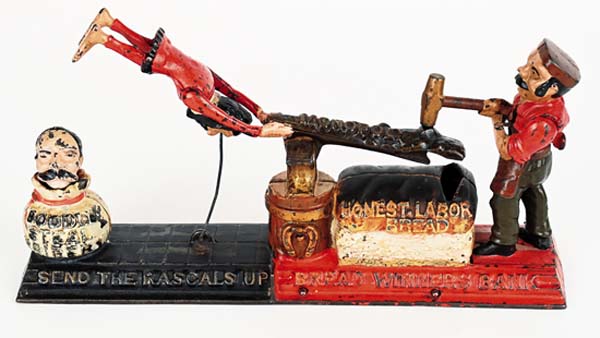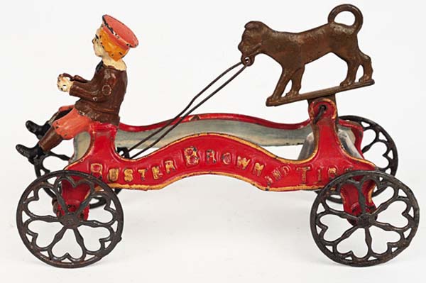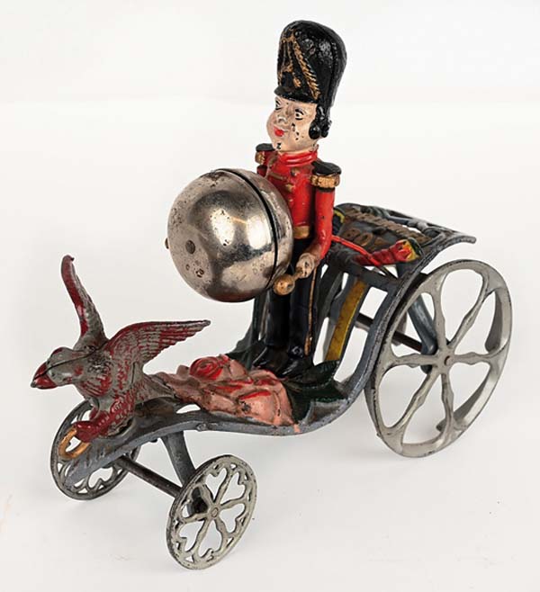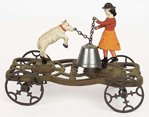 You never know what will happen at an auction, and the latest case to prove that point was Milestones Winter Premier sale featuring antique toys, banks and high-quality vintage collectibles held Dec. 6. The 633-lot selection chalked up $670,000 in sales, with several pieces well surpassing expectations and one sleeper rising from its long winters nap to command a price that was a staggering 51 times its high estimate. While undeniably beautiful, the group lot consisting of 20 Victorian-era three-dimensional pop-up Christmas cards harbored additional hidden value that probably would not have been recognized except by bidders with a deep involvement in Christmas antiques, ephemera in particular. They were three-dimensional pop-ups as opposed to standard-format cards, which set them apart from the get-go. But within the small specialty collection, there were also some rare examples, which did not evade the eyes of seasoned aficionados of Christmas goods. Estimated at $200 to $400, the lot was bid to $20,400, equating to an average price of $1,020 per card. This was a classic case of crossover-shopping success, said Miles King, co-owner of Milestone Auctions. Collectors of toys, banks, pop culture items and holiday antiques are very smart about scouring auctions that arent specific to what they collect. They always have an eye out for something great that might appear in an auction that isnt focused solely on the specialty they collect. We were delighted to see how much interest there was in this lot and also to be able to deliver the good news about the selling price to the consignor. Two banks, in particular, had a big day at the sale. A rare J&E Stevens Bread Winners mechanical bank, presented in VG-Excellent condition, realized $15,000 against an estimate of $5,000 to $8,000. Amongst the still (non-mechanical) banks, an Ober (Chagrin Falls, Ohio) nickel-plated Clown with Crooked Hat bank, known to be uncommon, was graded Excellent to Near Mint and entered with an estimate of $400 to $800. It delivered an auction-day surprise, matching the Bread Winners bank dollar for dollar achieving $15,000. The bells were ringing cheerfully as nearly five dozen rare antique cast-iron bell toys paraded across the auction block. The Drummer Boy Chariot made ca. 1895 by Gong Bell (East Hampton, Conn.) showed off crisp casting and well-executed details as well as bright original paint and no cracks or repairs. In Excellent-NM condition, it sold for $12,000 against a $4,000 to $8,000 estimate. An endearing Gong Bell Mary & Her Little Lamb bell toy with no condition problems claimed a strong $9,300 against an estimate of $1,500 to $2,000, and from Gong Bells crosstown rival, N N Hill, a charming bell toy depicting early comic-strip superstars Buster Brown and Tige swept past its $1,200 to $1,500 estimate to settle confidently at $4,680. All prices quoted in this press release are inclusive of buyers premium, as detailed on Milestones website. For more information, visit www.milestoneauctions.com. All images courtesy of Milestone Auctions.
