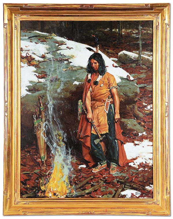 Collectors figuratively saddled up and traveled the historic Santa Fe Trail to Morphys June 21 auction of Western art and antiques, a million-dollar-plus event that embodied the spirit of American adventure and reverence for Native culture in 472 diverse and exceptional lots. The evening sale was a well-attended special highlight of the Old West Show & Auction weekend held annually at the Santa Fe Community Center. The auction lineup included fine and decorative art, riding apparel and tack; firearms, silverwork, Native tribal art and relics; and Hollywood cowboy memorabilia, to name a few of the categories. Top-lot honors went to an artist-signed oil-on-canvas painting by William Gilbert Gaul (1855-1919) titled Indian by Campfire. Gaul was a well-credentialed artist known for his military scenes and Western subjects, including realistic depictions of interaction between Native and Caucasian people. Born in New Jersey, Gaul studied in New York City at the Art Students League and the National Academy of Design (NAD), where, in 1882, he was elected a member. Gaul made many trips to the American West between 1882 and 1891, living on Army posts and with Indian tribes whose cultures and traditions he captured in his artworks. One of his best-known works is a portrait of Sitting Bull, which he painted from life. Indian by Campfire came with provenance that included a 2001 sale at Sothebys. Against a pre-sale estimate of $30,000 to $50,000, it sold for $39,360 at Morphys. Two of the most talked-about lots had a direct connection to the classic TV series The Lone Ranger and were screen-used by its star, Clayton Moore (1914-1999). Perhaps nothing was more essential to Moores iconic role than the black eye mask his character wore to conceal his identity. The cloth-and-plastic mask was molded to fit Moores face and became part of one of the most recognizable costumes in American TV history. Inextricably tied to a classic series that first ran on ABC Television from 1949 to 1957, the mask came with provenance from the estate of the shows producer, Jack Wrather. It sold within its estimate range for $27,060. Additionally, the auction included a pair of Colt Single Action Army Revolvers screen-used by Clayton Moore during filming of The Lone Ranger series. Both Colts were .45 caliber and bore the serial number 58918, indicating 1880 as their year of manufacture. The lot included six of the Lone Rangers silver-plated deactivated Remington UMC cartridges. Like the mask, the revolvers came with provenance from the estate of producer Jack Wrather. Entered with an estimate of $25,000 to $35,000, the pair of revolvers retired at $29,520. From the Civil War era, a desirable New Haven Arms Model 1860 Henry lever-action rifle was manufactured in 1863. It displayed all of the essentials collectors seek in an original Henry of its period, including matching serial numbers stamped inside the butt plate, on the lower inside tang, on the barrel breech and inside the stock channel. Also, an H stamp was visible inside the lower tang, and the barrel flat displayed an early-style small Henry patent legend stamp. A perennially-popular model with fans of historical firearms, the Henry settled above high estimate at $19,200. A magnificent example of Native American artistry, a Northern Plains/Sioux pictorial beaded vest was a scene-stealer at the auction preview. Its front panels were decorated with stunning images of two mounted warriors with feathered coup sticks, while the back showed two mounted braves dressed in full regalia, including headdresses and coup sticks, with an upper portion adorned with two pole-mounted American Flags. Described by Morphys cataloger as one of the nicest Native beaded vests ever to be offered by the Pennsylvania-based auction house, it rose to $19,200 against an estimate of $8,000 to $12,000. A visually compelling advertising piece, a rare lithographed pennant poster in an unusual trapezoidal shape promoted Buffalo Bills Wild West/Pawnee Bills Far East shows. Extremely colorful and profusely illustrated, its motif featured an image of Buffalo Bill (William F. Cody) in the foreground. Copyrighted in 1910 and printed by Russell-Morgan, the 80-by-24-inch pennant realized $16,800 against an estimate of $8,000 to $12,000. More than five dozen pairs of antique spurs were offered, including unique German silver and brass-inlaid productions that had been crafted within the walls of the Colorado State Penitentiary. The mounted spurs had heel bands adorned with 1-1/3-inch engraved, inlaid circles with brass borders, each encasing a five-point star. Rare and atypical, they sold just below their high estimate for $11,079. A small selection of coveted lawmens badges included examples from marshals, sheriffs and police from Arizona, Texas, California and Oklahoma. An extra-special entry was a Texas Rangers badge originally worn by WM Matt Cawthon, a sergeant with the Rangers Company F at Fort Fisher in Waco, Texas. Attractively decorated with a Texas Star and Texas Ranger on the obverse, the badge was engraved on verso with Cawthons initials WMC. At some point, the badge had been gifted to Buster Brown of Houston, Texas. It was conveyed to its new owner with an original signed letter to Brown on Texas Department of Public Safety letterhead. Against an estimate of $1,500 to $2,500, it claimed a strong price of $7,200. All prices quoted in this report are inclusive of buyers premium as noted on Morphy Auctions website. For additional information, visit www.morphyauctions.com. All images courtesy of Morphy Auctions.
