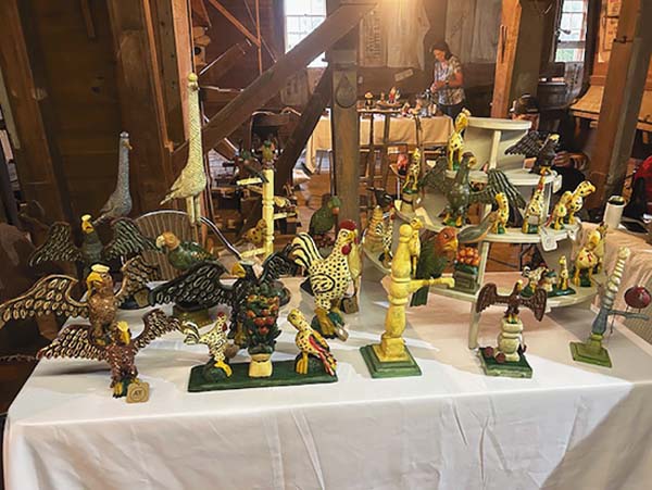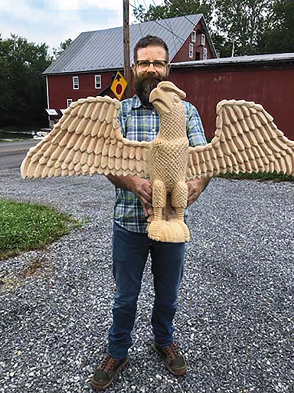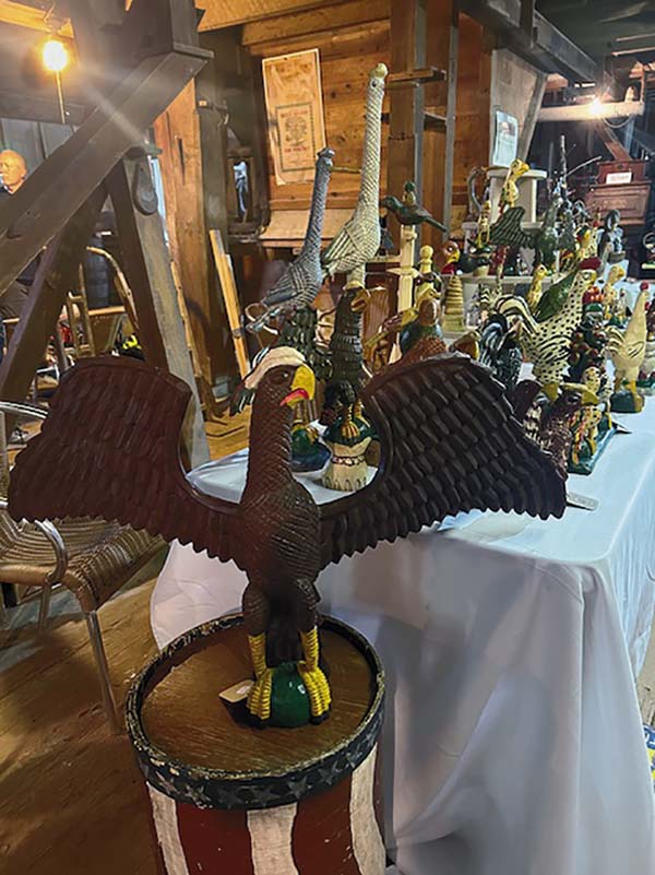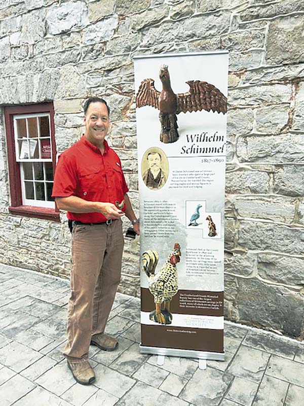 On June 28, Friends of Historic Heishmans Mill (FHHM) put on a free-of-charge event at Heishmans Mill, a historic water power mill along the Conodoguinet Creek just west of Carlisle, Pa. Listed on the National Register of Historic Places, the mill property is operated by the FHHM, a 501(c)(3) nonprofit corporation committed to increasing public access to the Conodoguinet Creek Water Trail and insuring the ongoing preservation of the mill through educational programs. In that effort, volunteers staged the inaugural Woodcarvers Expo in the Spirit of Schimmel show. One of the goals was to educate the public on the legacy of Wilhelm Schimmel, one of the nations foremost folk artists. Schimmel (1817-1890) was a German-speaking immigrant who is known to have spent time in the summer kitchen across the road from the mill, throughout the 1870s, then owned and operated by the Greiders. Schimmel created mostly animals, such as roosters and eagles. Through 19th-century published newspaper accounts and arrest reports, it is known he was an itinerant tramp who was routinely involved in altercations. He died in the county almshouse in 1890. Never signed, hundreds of wooden carved and painted folk carvings attributed to Schimmel have survived. Countless more have been destroyed and lost over the last 150 years. Today, every major American art museum has an example of an attributed Schimmel carving. A great grandson of the last operating miller, Randy Heishman purchased the mill in 2019 from Preservation Pennsylvania. A Schimmel enthusiast, Heishman stated the event attracted just under 300 people. The show wouldnt have happened without Heishman and the dedicated volunteers. Woodcarvers set up displays, demonstrated their craft, and sold their work inside the mill. Those included Andy Van Brookhoven of Lititz, Paul Hoch of Carlisle, Jim and Joan Hiser of Carlisle Springs, and Dan Strawser Jr. of Tennessee, among others. Jim Small of Shippensburg demonstrated the application of gesso undercoating on his exceptional Schimmel-style spread-wing eagles. Small is a highly skilled wood carver and furniture maker. He also had wooden stools for sale he made in the style of the famous Wharton Esherick. Jay and Leigh Ann Ouellette of Stone House History were also exhibitors. A food truck was on-site, lectures were presented, and feedback from attendees was very positive. A display of various contemporary Schimmel-influenced carvings were available for purchase from such carvers as Rodney Boyer, Jonathan Bastian, Walter and June Gottshall, Phil Gottshall, and others. An unusual Rodney Boyer spread-wing eagle was sold, as was work by the late couple Walter and June Gottshall. Here is to hoping the Spirit of Schimmel woodcarving expo can become an annual tradition. To learn more, email Randy Heishman at heish1@aol.com or visit www.friendsofheishmansmill.org.