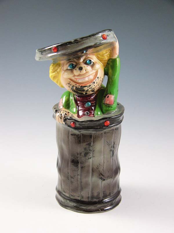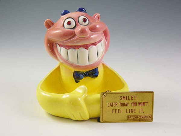 Kreiss Psycho Ceramics were first sprung on an unsuspecting public in the late 1950s. Theyre the three-dimensional equivalent of the eras popular (and usually snarky) studio cards. Kreiss specialized in jokey themes, offered up by what one reviewer called deformed blobs, eccentric hillbillies, and fat, drunken Santas. Although the jokes were barbed, Psychos were successfully marketed as novelty gifts. Hopefully, the recipients had thick skins. One tubby Kreiss gremlin, perched on a bathroom scale, came with the hang tag, Want to lose 10 ugly pounds? Cut off your head! On the tag reverse, the gift-giver had added this message: Eloise - have a good time on your birthday - Earl. Its safe to assume Earl was dropped from Eloises party list. Ceramics importer Murray Kreiss founded his California company in 1939, in association with sons Howard and Norman. World War II stalled the companys progress, but things picked up postwar, with Kreiss focusing solely on Japanese imports. Early products followed familiar themes, such as cuddly animals, pretty girls, and romanticized ethnic interpretations. The objects themselves were also familiar: figurals, salt-and-peppers, ashtrays, and holiday knickknacks. Many of these initial offerings were at the low end of the quality scale. Often indifferently designed, with slapdash detailing and gaudy paint jobs, they were no match for ceramics being turned out domestically, primarily on the West Coast. Then again, Kreiss ceramics were a lot cheaper, benefiting both the customer and the company. And suddenly, everything changed. Following the passing of Murray and Howard, Norman Kreiss came up with the idea for a never-before-seen line, best described as quirky. In 1958, the first Psycho Ceramics waddled their way into stores. Different than absolutely anything else on the giftware market, these ... ah ... unusual figurals won over buyers in search of something off the beaten path. Unlike earlier Kreiss imports, the Psycho line paid close attention to quality and detail. Here, garish colors were a plus, and exaggerated, zany features (bulging eyes, toothy smiles) were right at home. Many of the figures, averaging 5 inches high, were hand-embellished with rhinestones and cold-painted accents. Sometimes adding to the goofy aspect were stringy plastic or rabbit fur hair. Even when cast from the same mold, no two Psychos were exactly the same, since the artists doing the by-hand applications after glazing were given significant leeway. With Psycho figurines capturing the countrys fancy, Kreiss carried through the theme on objects such as ashtrays, mugs, vases, salt-and-peppers, and even bobbleheads. Selling for under a dollar, Psychos gave studio cards a run for their money. Why insult your pals with a card when, for about the same price, you could insult them in 3-D? The success of the Psychos called for the addition of other oddballs to the Kreiss lineup. Among them were the way-down-at-their-heels Elegant Heirs; the cool-as-cucumbers Beatniks and Beatchicks; the perpetually soused Goodtime Charlies; the Flintstones-like Crazy Green-Eyed Monsters; and the self-explanatory Nudies. Most came with a paper or metal tag on a string or chain, although some figurines were mounted on wood bases with an attached plaque. The I.D.s told the recipients precisely what they were in for. A menacing Psycho creature with enormous teeth and devilish eyebrows announced We Welcome Your Suggestions With Enthusiasm, an Elegant Heirs hobo popped out of a garbage pail proclaiming They Warned Me This Is Where I Would End Up, and a buxom blonde bellowed Shes My Mother And I Say She Stays! Psycho Ceramics continued to captivate during the 1960s and 70s; then, decorative tastes moved on. Fortunately, a twisted sense of humor never seems to lose its unique appeal, which means that Psycho Ceramics, in all their crazed glory, continue to attract fans. Theyre offered regularly online, most priced in the $25 to $75 range (Beatniks rule the coolness price chart, averaging $75 to $100). Kreiss Psycho Ceramics. Definitely weird. Definitely wacky. And definitely worth collecting. (But as a birthday gift? Well, maybe not). Kreiss ceramics courtesy of Mark Dickmeyer. Photo Associate: Hank Kuhlmann. All photos by Donald-Brian Johnson. Donald-Brian Johnson is the co-author of numerous books on design and collectibles, including Postwar Pop, a collection of his columns. Please address inquiries to: donaldbrian@msn.com.
