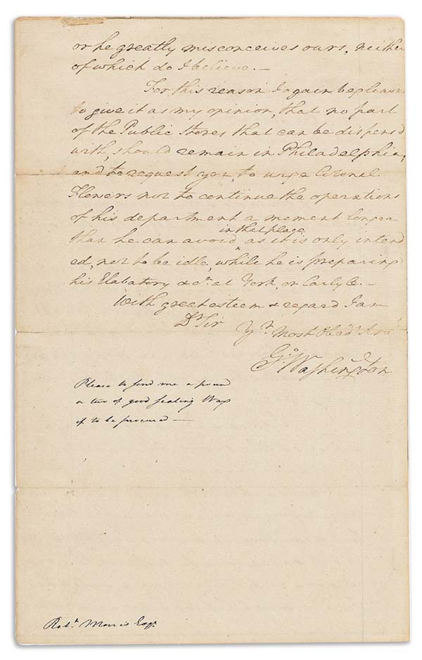Letter Signed By George Washington To Lead Manuscript Americana Sale