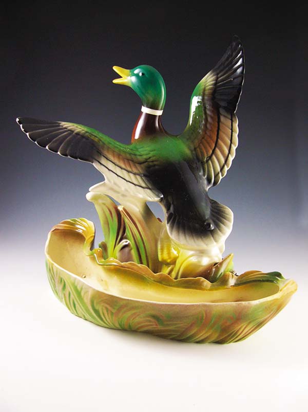 Its the mid-1950s. A cozy evening at home. My little sister and I, elbows propped on pillows, have moved in as close as possible to the television set, awaiting the opening credits of The Adventures of Superman. When the TV screen is only 13 inches, you have to move in close. The rest of the room is pitch dark, the better to see the kinda gray and grainy image onscreen. The Superman fanfare begins! The announcer intones, Faster than a speeding bullet. . . Theres a click. The overhead living room light blazes on. Superman turns even grayer and grainier than usual. Mom has discovered us. How many times do I have to tell you? Watch that TV in the dark and youll ruin your eyes! Yes, it was the mid-1950s. And my folks were, I was sure, the only ones on the block whod yet to make their kids lives happier by investing in a TV lamp. Television lights, to address them more formally, solved the dual problems of providing some light when TV-watching while diverting that light from the screen so as not to wash out the flickering black-and-white visual. The bulb (no stronger than 40 watt) was placed behind a figural or scenic depiction, which acted as a shade. The shaded bulb, with its indirect backlighting, offered a dramatic flourish. But did TV lamps actually keep kids from ruining their eyes? Well, at least they kept Mom from talking about it. Despite their tiny screens, early television sets were comparatively huge (no flat screens in the 50s). The picture tubes which powered them took up plenty of room. And, since the majority of homes boasted only one TV, it was given pride of place in the living room. Most sets were encased in tasteful wooden cabinets, and the cabinet tops were an ideal space for TV lamp placement. Although television technology was underway in the 1930s, WWII claimed it for more urgent uses. The first TV sets didnt hit the markets until 1946. TV lamps, primarily of glazed ceramic or plaster, soon followed, and some dealers threw in a free lamp with each set purchased. Although few lamps carried identifying marks, its estimated that 75-plus U.S. manufacturers (as well as many overseas firms) churned them out, including such names as Haeger, Maddux, and Lane. Themes for these sculptures that light up were myriad. Among the most popular: animals, birds, the seashore (ships, shells, and mermaids), and transportation (from covered wagons to Model Ts). Taking full advantage of the TV lamps lighting possibilities were renditions of Siamese cats and Comedy/Tragedy faces, an eerie gleam glowing through their cut-out eyes. Other lamps doubled as planters, complete with plastic flowers. Stylistic lines were generally clean and flowing, a 50s modern re-interpretation of Art Deco. Soothing colors were utilized to harmonize with the rest of the home environment. The heyday of the TV lamp was brief. By the 1960s, televisions improved picture quality meant that it was no longer necessary to watch TV in near-total darkness. But what to do with all those lamps? Fortunately, their compact size (8 to 14 inches), subdued illumination, and varied themes make them just right as accent pieces around the home. Although prices have increased from the original $15-and-under, many lamps can still be found at well under $300, online, or at vintage shows and shops. Estate sale finds are particularly sought-after, as most were carefully preserved by their original owners. As with other older lamps, rewiring is recommended, but avoid purchasing TV lamps with noticeable cracks or chips. Attempting to restore them to their original condition will do little to brighten your day. Now, if youll excuse me, its time for a rerun of The Adventures of Superman. Im going to turn on the TV lamp, turn on the TV, plop myself down in front of it, and try my best not to ruin my eyes. TV lamps courtesy of Larry Hunt and Mark Dickmeyer. Photo Associate: Hank Kuhlmann. All photos by Donald-Brian Johnson, except as noted. Donald-Brian Johnson is the co-author of numerous books on design and collectibles, including Postwar Pop, a collection of his columns. Please address inquiries to: donaldbrian@msn.com.