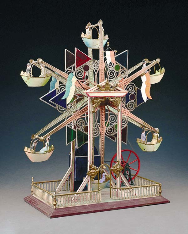On Thursday, May 29, Morphys will auction Part I of the lifetime personal collection of European and American antique toys amassed by the late Tom Sage Sr. (1939-2024) of Allentown, Pa. Widely acknowledged as a pioneer of antique toy dealing and collecting, Sage was known for his encyclopedia knowledge of toys and a well-cultivated international network of industry contacts with whom he conducted business for more than 50 years. While buying and selling rare toys was his full-time occupation, Sage also had a mental wish list of toys and trains he personally wanted to own. Over decades, he filled the slots on that list, and it is those pieces that will be offered in the sale. While every toy in the collection is a showstopper, the auction catalogs cover photo suggests the top seller may end up being Sages 1904 Ferris Wheel made by the revered German firm Marklin. One of only three or four of its type known to exist, in researching his fathers toys, Tommy Sage Jr., who heads Morphy Auctions Toys & Trains department, related that he had found copies of ca. 1910 photos taken in Brooklyn of the Ferris Wheels then-owner sitting with his son and holding this example. The Ferris Wheel can be traced back to the gentlemans relative who worked for a Brooklyn department store and who received the toy when the store closed down before World War I. Dad purchased it at Sothebys in 1994. It was one of his finest toys, and he thought so highly of it, he kept it in his bedroom, noted Sage. The Ferris Wheel will convey to its new owner with paperwork, the aforementioned copies of 1910 photos, and a Sothebys tag and receipt. The pre-sale estimate is $100,000-$200,000. In addition to rarity, another characteristic apparent throughout the museum-quality Sage Collection is exceptional, if not astonishing, original condition. Tom Sr. was one of the first antique toy dealers who weighed condition as the overriding factor prior to making any purchase. Tommy recalled, He recognized early on just how important condition was to the trailblazers who came just before him in the toy hobby. He took that as a cue to follow and would always pay a lot of money to obtain a perfect example. It took many years of dedicated searching for Sage to locate his 45-inch Marklin Amerika tin oceanliner. Made ca. 1909-10, it is an electric version, powered by a dry cell battery-operated motor housed within the hull and connected to two propellers via a drive shaft. Beautifully appointed and in stunning original condition, it represents the largest cataloged (Ref. 5050/11E) Marklin oceanliner of its era. My dad was very fond of large German boats, and this was one of his best, remarked Tommy. Also produced at Marklins original factory in Goppingen, Germany, the all-original Gefion battleship is designed with a distinctive ram front, a feature that was added to warships of its era for the express purpose of inflicting damage on enemy vessels. With respect to toy ships, the rule is, the bigger the ram front, the earlier the production. This particular toy, which comes with a crew of 11 original Heyde soldiers, dates to around 1904. Marklin rival Rock & Graner, which also based its operation in Goppingen, Germany, was the manufacturer of a 20-inch-long Wilhelm II clockwork side-wheel (paddlewheel) boat with a substantial front bow. Tommy Sage noted that his father owned some 70 antique toy boats, and of those, only two were paddlewheelers. He explained that they are especially rare because not as many were made in comparison to other types of marine craft. In the early 20th century, kids preferred battleships and oceanliners, so far fewer paddlewheelers actually made it to the marketplace, he said. Rare and desirable, the Wilhelm II is pictured in (David) Presslands Great Book of Tin Toys (New Cavendish Books, 1995). A classic that appeals to both toy aficionados and collectors of holiday antiques, a ca. 1912 Fischer Father Christmas car is lithographed on its red body with endearing images of teddy bears and other playthings. The rear section of the car is loaded with Christmas-themed goodies, including a small feather tree, a Cracker Jack mini Toonerville Trolley, and other small toys and novelties. Sage observed that the car is in mint condition and one of the finest of few known examples of its type. Tom Sr. was fascinated by early German trains and trams and acquired some fine productions, including a ca. 1900 Marklin clockwork tramway trolley. Handpainted in green with red and cream, the near-mint tram car still has its six original figures and four original catenary poles, with a 27-inch track on which to travel. Like so many important toys in the collection, this turn-of-the-20th-century charmer is illustrated in Presslands Great Book of Tin Toys. Tommy opined that it is the best of all trolleys in his fathers collection, describing it as absolutely beautiful. Tommy recalled that his father loved to place an antique Marklin lamp next to every antique toy car he displayed. His selection of Marklin lighting included single, double, and especially-rare triple-globe lamps. One of his best triples retains all three of its original globes, with appealing robins-egg blue original paint still present on its metal lamp post. Standing 16.5 inches tall and in excellent to near-mint condition, it is expected to sell for $8,000-$12,000. The Thursday, May 29, auction will be held live at Morphys gallery, 2000 N. Reading Rd., Denver, Pa., starting at 9 a.m. Eastern Time. All forms of bidding will be available, including absentee, by phone, and live via the Internet through Morphy Live. For condition enquiries, to leave an absentee bid, or to reserve a line for phone bidding, call Dan Morphy toll-free at 877-968-8880 or email info@morphyauctions.com. All images courtesy of Morphy Auctions.