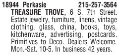 18944 Perkasie 215-257-3564 TREASURE January 01, 1970 back to articles More Articles Share & Print back to articles