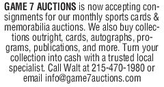 GAME 7 AUCTIONS is now accepting con January 01, 1970 back to articles More Articles Share & Print back to articles