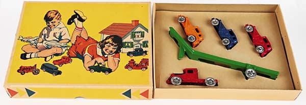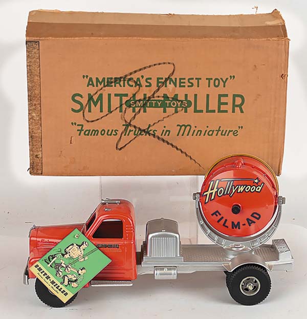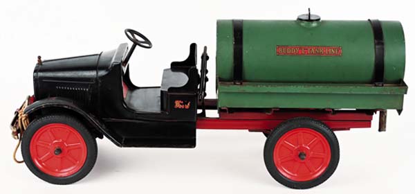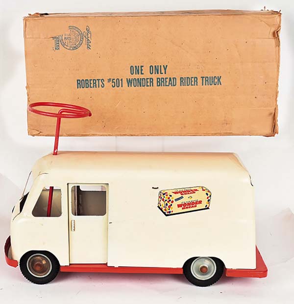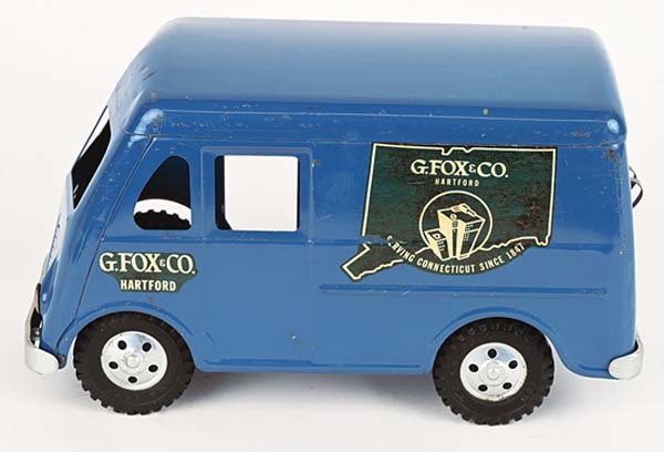 A select convoy of hefty construction, delivery and cross-country transport trucks rumbled through Milestones suburban Cleveland auction gallery on Jan. 10 and 11, signaling the start of an event that would achieve an impressive $938,000. The Ohio companys New Years Toy Truck Spectacular featured 1,000-plus rugged big-boy toys of the 1920s through 1970s, most of them coming from a single lifelong private collection. The pressed-steel trucks quality, condition and rarity, the trifecta that all toy vehicle collectors seek, kept bidders engaged, with particular interest shown in the special subsection of new/old store stock with crisp original boxes. The Buddy L convoy was led by an elusive green, red and black Water Service Truck with rubber tires, headlights, and bumper. The side of its rounded water tank displayed signage that read Buddy L Tank Line. Similar identification appeared on the rear of the tank, with the addition of Built By Moline Pressed Steel Co. / East Moline, Ill. With all-original paint and in overall excellent condition, it far outdistanced its pre-sale estimate of $3,000 to $4,000 to command a winning bid of $18,600. Also from the exalted Buddy L toy firm and sized similarly to the Water Service Truck, a doored 1930 to 1932 Baggage Truck boasted vibrant yellow paint on its stakebed, rubber tires with red hubcaps, headlights, and a bumper. It was graded excellent and showed only small areas of touch-up on the truck beds left side and some minor touch-up to the fenders. An exceptional truck that captured collectors attention from the get-go, it breezed past its pre-sale estimate of $8,000 to $10,000 to apply the brakes at $16,380. A handsome 1954 Tonka G Fox & Co. / Hartford delivery truck presented in all-original condition with attractive Bristol blue paint overall. As its intact decals testified, the G Fox department store had been serving Connecticut since long before the Civil War - 1847, to be exact. In fact, G Fox was the largest department store in the United States until its 1965 sale to May Co. In excellent condition, the 12-inch-long delivery truck no doubt evoked nostalgia with some bidders who remembered the days when department stores delivered purchases to ones home. Against an estimate of $1,000 to $1,500, it sold for $8,610. Youngsters of the post-WWII era, not unlike children of today, especially loved toy sets that came with lots of imagination-stirring accessories. A 1956 Tonka #B-206 Trailer Fleet Set certainly filled the bill with its Cargo King Truck and Trailer (manufactured in 1956 only), Livestock Truck and Trailer, Log Trailer with logs, and animal figures. The example offered by Milestone was all original in its 25-inch-long partitioned box with insert. Graded excellent, it attracted multiple bidders who drove the final price to $5,520 against an estimate of $1,500 to $2,500. In the 1930s, even younger boys and girls were able to join in on the fun of playing with toy vehicles, thanks to sets like A.C. Williams Austin Car Hauler. Housed in a glossy, brightly-colored pictorial box, the immaculate set auctioned by Milestone contained four manageably-sized cast-iron vehicles, three cars and a semi-truck to haul them, with an included attachable car-carrier. Graded excellent-near mint, this unusual find in extremely nice condition sold for $3,075 against an estimate of $800 to $1,200. The only thing thats more fun than a big, authentically-modeled pressed steel truck is an example that you can ride on. The auction included a Roberts #501 Wonder Bread Rider Truck with instantly-identifiable images of Wonder Bread packages on both sides. The toy appeared never to have been played with, was in excellent condition, and retained its original cardboard box identifying its contents by exact name. Entered with a $600 to $800 estimate, the truck delivered the goods with a selling price of $3,000. For further information, call Miles King at 440-527-8060 or email info@milestoneauctions.com. All images courtesy of Milestone Auctions.