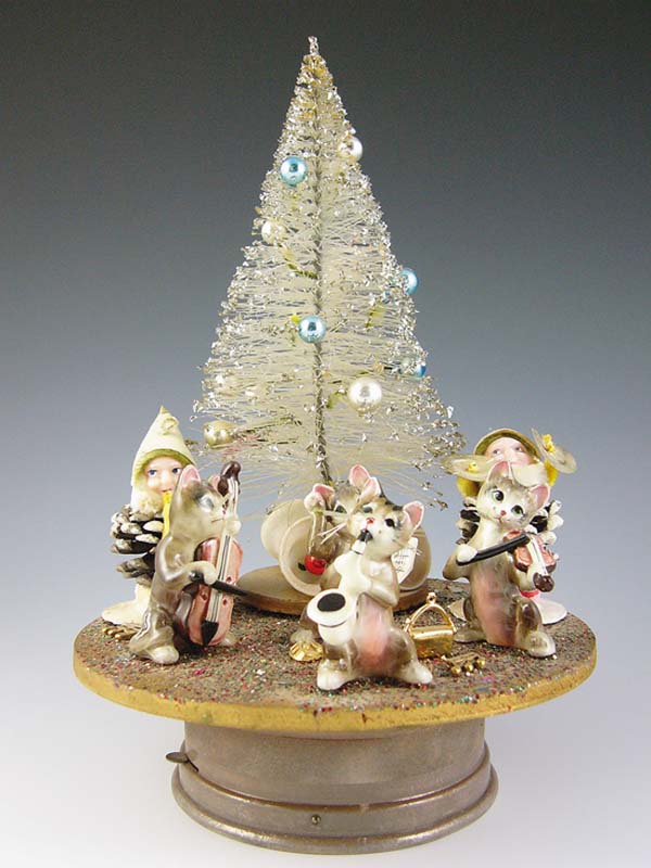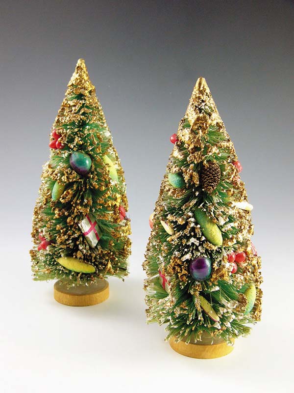 O Christmas tree, O Christmas tree, How lovely are thy branches! And thy lights. And thy ornaments. And even thy hard-to-put-on-and-even-harder-to-vacuum-up tinsel. According to legend, the Christmas tree was a Martin Luther brainstorm. Sparkling stars, seen through the limbs of a forest fir, prompted Luther to place candles on the branches of a tree at his home, recapturing the starry effect. Prince Albert, German husband of Queen Victoria, brought the Christmas tree tradition to England. An 1848 Illustrated News holiday portrait of the Royal Family, complete with decorated tree, gave the custom widespread attention. By 1850, its widespread popularity had spread to America. For those whose childhoods spanned the 1950s and 60s, the most familiar Christmas tree is a traditional towering green one. Laden with tinsel, dripping with ornaments, and bedecked with ungainly colored light bulbs, the green tree was the baby boomers ideal. Most green trees of the period were real, although artificial trees had been introduced in 1950 by the Addis Brush Company. When the swinging 1960s swung in, so did the flocked tree. The intent was to depict a snow-covered moonlit evergreen, enhanced by hundreds of tiny twinkle lights peeping through artificial snow. White flocking was the norm, but phosphorescent blue trees and Pepto-Bismol pink trees also had their fans. Home flocking kits were available for ambitious folk. For the less skilled, pre-flocked trees were available. Another staple of the era was the silvery aluminum tree with pom-pom branches. This was more a modern-age idea of a tree, rather than anything realistically tree-like. But still, under a rotating color wheel it looked terrific. Early trees were illuminated with candles. In the late 1800s, these were affixed to the tree branches with melted wax. Candleholders came into use in the 1890s. Edward Johnson, a Thomas Edison employee, first brightened a tree with electric bulbs in 1882, but for several decades the process was too cumbersome and costly for home use. Then, in 1917, Albert Sadacca (just 15 at the time), invented the safety Christmas light, prompted by a candle-lit tree tragedy in New York. Alberts invention became the cornerstone of the NOMA Electric Company, the worlds largest supplier of holiday lighting and leading manufacturer of those big bulbs fondly remembered from the 50s. Another 50s favorite was bubble lights, tubes of fluid attached to globular plastic lighted bases, calling to mind the tree candles of earlier times. While the first tubes sometimes leaked or refused to produce bubbles, less trouble-prone modern versions have enjoyed a resurgence. Twinkle lights arrived relatively late in the game, first captivating consumers in the 1960s. Their tiny size focused attention on the illumination, rather than on the bulb. Providing the personalized touch: tree trimmings! Apples, gilded candies, twists of colored paper, and even flowers were all early versions of Christmas tree ornamentation. By the early 20th century, homespun eye-catchers, such as strings of popcorn and berries, had been joined by painted glass ornaments, both imports and domestic. Whether ball-shaped, star-shaped, cone-shaped, or any shape imaginable, these are colorfully fragile bits of Christmas cheer to treasure. Theme trees (such as all red bows) had their day in the decorating sun, but the most popular Christmas trees are those where decorating imagination runs rampant. That imagination extended to items that carried the Christmas tree theme throughout the house. There are Christmas-tree-shaped serving dishes, mid-century ashtrays, table trees made of everything from ceramic and glass, to shells, bottle brushes, and pine cones. A 1958 holiday homemaking magazine even suggested a do-it-yourself Spiral Tree. Its basic components: a dog dish, a pie tin, and plenty of eight-gauge copper wire. As most vintage tree-themed dcor pieces were mass-produced imports, they remain both readily available and relatively inexpensive. Most (other than musicals) are under $30, so you can snag a sleighful without asking Santa for a loan. Now, lets see. . . who wants to help me untangle these lights? Happy Holidays! Photo Associate: Hank Kuhlmann. All photos by Donald-Brian Johnson, except as noted. Donald-Brian Johnson is the co-author of numerous books on design and collectibles, including Postwar Pop, a collection of his columns. Please address inquiries (or Christmas greetings) to donaldbrian@msn.com.