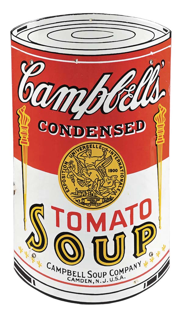 An unusual Pabst Blue Ribbon double-sided porcelain neon sign with unique glass face inserts chalked up $44,280; a rare, high-grade single-sided tin sign for Ace High Motor Oil with car and airplane graphic garnered $41,820; and a Canadian twin 10-gallon double-visible gas pump rang up $34,440 at Morphys Automobilia & Petroliana auction held Feb. 17, 18, and 19. The three-day event was packed with nearly 1,500 lots of motoring-related signage and service station items, antique advertising, bottles and flasks, all meant to appeal to discerning collectors. It was held live at Morphys Pennsylvania gallery, with all forms of remote bidding available, including live via the internet thru Morphy Live. The Pabst Blue Ribbon double-sided porcelain neon sign was the overall top lot of the three days, breezing past its $10,000 high estimate. Mounted to its original can, the sign was a fine, rust-free example that would enhance any breweriana collection. It was large, measuring 58 inches by 11 inches by 38 inches, and was graded 8.9+ on both sides. The rare and high-grade single-sided tin sign for Ace High Motor Oil, with a car-and-airplane graphic, measured 7.75 inches by 13.25 inches. It was certified and graded by AGS, the premier authentication and grading service for antique advertising. It boasted great color and gloss throughout the field and was one of the highest-grade examples of this type of sign that Morphy has ever sold. The Canadian twin 10-gallon double visible gas pump, standing 100 inches tall, had undergone an older restoration in red, white and gold livery. The pump showed two intact glass cylinders, with the upper one in very good to excellent condition. It was a candidate for a good cleaning or even a new restoration. Two petroliana lots posted identical selling prices of $19,680. One was a Flying A Gasoline single-sided embossed porcelain sign, showing excellent color and gloss throughout the field and a clean Flying A graphic. The bright and glossy example, measuring 62 inches by 48 inches, graded at 8.5 for condition. The other was a brilliant example of a Tioga Gasoline single 13.5-inch diameter globe lens with a Native American graphic. The globe lens, boasting excellent color and gloss throughout, scored a near-perfect 9.0 for condition. It exhibited negligible wear in the field. A rare, ca. 1920s single-sided curved porcelain Campbells Tomato Soup can sign, graded 8.5+, exhibited exceptional color and gloss. It ended up finishing at $14,760. The iconic Campbells Tomato Soup can went from grocery store staple to pop art superstardom thanks to Andy Warhol. To learn more, visit www.morphyauctions.com. All images courtesy of Morphy Auctions.