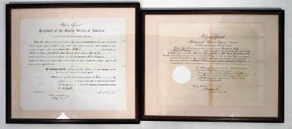 An exceptionally rare 1862 Nevada Territory receipt issued to Samuel Clemens (better known as author Mark Twain) for his work as a legislative reporter sold for $23,125, and a pair of 1871 documents appointing the melter and refiner to the Carson City, Nev., Mint, one of them signed by President Ulysses S. Grant, rang up $15,625 in a huge, four-day Desert Riches Auction held Jan. 31 to Feb. 3 by Holabird Western Americana Collections LLC. The event was packed with more than 2,100 lots in numerous collecting categories to include mining, gold, numismatics, scripophily, Native Americana, railroadiana, philatelic and general Americana. The first three days were live sessions, hosted in Holabirds Reno gallery. The fourth day was a timed-only session, hosted exclusively on iCollector.com and LiveAuctioneers.com. We chose the name Desert Riches to honor the gold specimens, stock certificates, mining artifacts and railroad pieces in this sale from the California desert mining camps in Inyo County and Death Valley, as well as from Arizona and Nevada, said Fred Holabird, the president and owner of Holabird Western Americana Collections LLC. Overall it was a tremendous success. The Samuel Clemens receipt from the Territory of Nevada House of Representatives in Carson City, dated Dec. 20, 1862, reads in part, To the Territorial Auditor, We hereby certify that Saml. L. Clemens is entitled to the sum of Two Hundred and Forty Dollars for forty days services as Reporter etc. for the House. signed John H. Mills, Speaker. Clemens signed the reverse side. Also sold was a Pony Express Virginia City (Nev.) cover sent the same month Clemens arrived in town to work for the Territorial Enterprise, in September 1862. Wells, Fargo & Co.s Virginia Pony Express began operations on Aug. 8, 1862, using the 10-cent fee for a half-ounce letter. The rate increased to 25 cents in January 1863, making this an 1862 specimen. It sold for $2,875. All prices quoted include the buyers premium. Online bidding was via iCollector.com, Invaluable.com and LiveAuctionbeers.com. Day one had 434 lots of stock certificates and bonds (mining, oil, transportation, such as air, auto, railroad and steamer/marine, and miscellaneous, such as banking, Express and foreign) and philatelic (including postal covers, revenue and U.S. and foreign stamps). Day two showcased 503 lots of transportation, to include railroad (passes, lanterns, locks and ephemera); bottles and brewing; general Americana (geographic, U.S., foreign, books and maps, and miscellaneous, to include gaming, sports and toys); and military, political and weaponry/militaria. A paroled prisoner pass written on April 10, 1865, the day after the surrender by General Robert E. Lee at the Appomattox Court House, for Private John Harris of the Virginia Infantry, signed by Col. William Beal of Co. A, Provost, framed, brought $4,680. Also, a mounted original albumen photo from 1881 of 13 men who made up a posse sent from Tucson to Yuma (Arizona) to take over the goods from a suspected major retail goods swindle, changed hands for $2,750. Day three featured 501 lots of Western art and collectibles (cowboy, Native Americana and art); minerals and mining (gold specimens, minerals, fossils, mining artifacts and equipment and mining ephemera); and numismatics (U.S. Mint and ingots, California fractional gold, U.S. and foreign coins, medals, currency and scrip, and tokens). A crystalline gold specimen pulled from the Vulture Mine in Vulture City, Ariz., nestled into the landscape of the states Sonoran Desert, 0.46 troy ounces, 1.25 inches long, went for $3,125. A 2007 American Buffalo $50 bullion gold coin, graded PCGS MS 69, .9999 fine, one of only 136,000 minted, found a new owner for $3,000, and an 1896-S U.S. Liberty Head $20 gold piece in F-EF condition, on a 26-inch chain that does not test for gold content, earned $2,875. A Brunswick & Company (Chicago) token (Good For / One / At N. 10), 24mm, possibly the same No. 10 saloon in Deadwood, S.D., where Wild Bill Hickok was shot, went for $1,625. Day four, the timed session only, featured 716 lots, all with $10 start prices, in categories that included minerals and mining, transportation, general Americana, numismatics, and stocks and bonds (mining, transportation and miscellaneous). For additional information, email fredholabird@gmail.com or visit www.holabirdamericana.com.