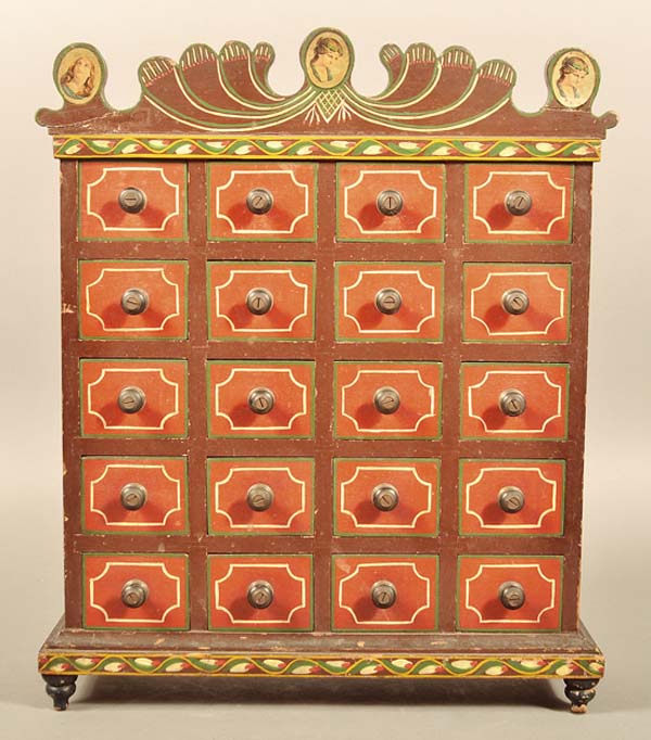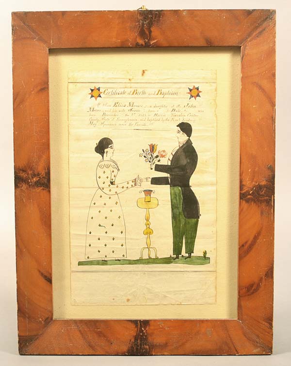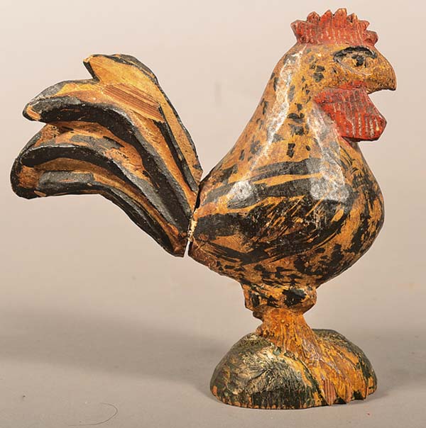 Conestoga Auction Company, a division of the Hess Auction Group in Manheim, Pa., held an unreserved two-day estate sale for the late Ron Hammer on March 28 and 29. Well-presented, the auction house did a great job handling the material. It was among the highest quality sales in several years conducted by Hess. Most market observers will tell you an object needs to stand on its own merits, meaning if something is objectively a high condition, quality item, it matters very little where it sells, just when. The latter can be tricky to understand. There were more active buyers 20 to 40 years ago vs. today. This isnt commentary on the age demographics of buyers. Not many 30- or 40-year-olds are prepared to write a check for $20,000 on something to decorate their home with. That was the case generations ago, as it is now. This is an industry fueled by disposable income, unlike the car market, something nearly everyone in society needs. But spending $2,000 and under is accessible for people who have enough interest to check out and attend an auction. Hats off to John Hess and crew for fostering an auction environment where Im not the youngest person in the salesroom. A good crowd was there both days, and Internet bidding was active. Business partners John Hess and Phil Nissley called the bulk of the 952 lots, 461 of which were day one. Hesss 25-year-old son, Alec Hess, is a licensed auctioneer and working for the firm. A bright future is ahead. He called some of the sale both days and did a fine job. In-house bidders were charged a 20-percent buyers premium, online were charged 25 percent. Ron Hammer of New Oxford, Pa., was by-and-large an auction buyer. Passionate about the hunt, he never missed a Saturday sale, whether it was when small on-site farm sales were still occurring or high profile sales at any of the Pennsylvania auction houses. He had the resources, and some that knew him would say he enjoyed being the last one with his hand raised. A volume buyer and regional buyer, this was a Pennsylvania sale through-and-through. There was some very fine signed redware and stoneware, a lot of early baskets, a large assortment of Lehnware, Currier & Ives framed prints, good country furniture, fraktur, and other folk art. Many things were from Adams County. It didnt take long for things to get exciting, as a three-gallon Cowden & Wilcox crock with foxglove, floral and leaf design realized a high $37,200, going to a phone bidder. I saw him buy that here (Conestoga) in 2013 for $3,750 hammer price, said someone in the salesroom. The price was shocking for stoneware followers who understand what price structures typically are for certain forms and designs. Convention can be thrown out the window if two people disregard those typical market price structures. A softwood paint-decorated box, often referred to as an apple tray, went for $4,680. Hammer paid $6,050 in 2004 at the first Dorothy and Eugene Elgin sale held at Conestoga. An early country wooden bucket bench in red brought $6,900. Hammer paid $5,225 at the Elgin sale. Hammer spent around $25,000 at the 2004 Elgin sale. It was a high powered auction. As outlined, a few things did a bit less here, some brought more. In the rare pottery category, a stamped John Bell miniature stoneware jug in script reading, C. F. Bell 1857, brought $16,800. It sold for $10,350 in 2012 at a Crocker Farm auction. John Bells son was Charles Frederick Bell. This jug bears possibly his earliest date, made when Charles was 17. From a group of early openwork rye straw baskets believed to be from Hanover, an example with footed base sold for $2,520. A fraktur bookplate signed Catharina Guth sold for $4,500. A decorated show (hand) towel signed Catharina Guth dated 1852 sold later in the sale for $900. Ideally, they should have been sold following each other. A conversation piece of day two was the Youtz Dutch cupboard. A well-known item, it was among the highlights of the landmark April 1, 2000, Clyde Youtz estate sale held at Conestoga. Under different market conditions, the first of four catalog sales for the late dealer from Newmanstown, this April 1, 2000, auction was considered the high water market for country Americana sales. The salesroom was standing room only and it was difficult to move around. Prices achieved were staggering. As a whole, prices realized at auction pre-9/11, notably in 1999 and 2000, were staggering. The Youtz sales helped cement the career of Jeff DeHart, former owner of Conestoga Auction Co. Ron Hammer paid $66,000 for the cupboard in 2000 at that sale. Dealer Greg Kramer bought the cupboard at the Hammer sale for $24,000. Wilhelm Schimmel was a German speaking immigrant who lived in the Cumberland Valley of Cumberland Co., Pa., ca. 1869 to his death in 1890. It is widely believed he came over during the large waves of immigration that occurred post Civil War. Among the legendary figures of American folk art, he carved and painted (never signed) and is most known for spread-wing eagles and roosters. At a sale just west of Carlisle in 2013 a 7.5-inch-high rooster having descended in the Raudabaugh and King families, sold for $27,000 to Ron Hammer. It sold at the Hammer sale for $18,000 to one of the back bidders at that previously mentioned sale. Another Schimmel rooster, 6.75 inches tall, sold to an advanced private collector from Berks County for $16,800. Staying in the folk carving category, a Simmons (five) bird 12.5-inch-high bird tree sold to Greg Kramer for $42,000. Schtockschnitzler Simmons was an itinerant carver, active ca. 1885-1910, known to have spent time in the Moselem Springs area of Berks County. The forename of Schtockschnitzler loosely translates to old man cane carver. He carved canes, birds on stands, and bird trees, and the work is highly valued today. Due in large part to Dick and Rosemarie Machmers 1991 book Just For Nice and the exhibit which followed suit, wider recognition for the folk carvings heightened. At a sal