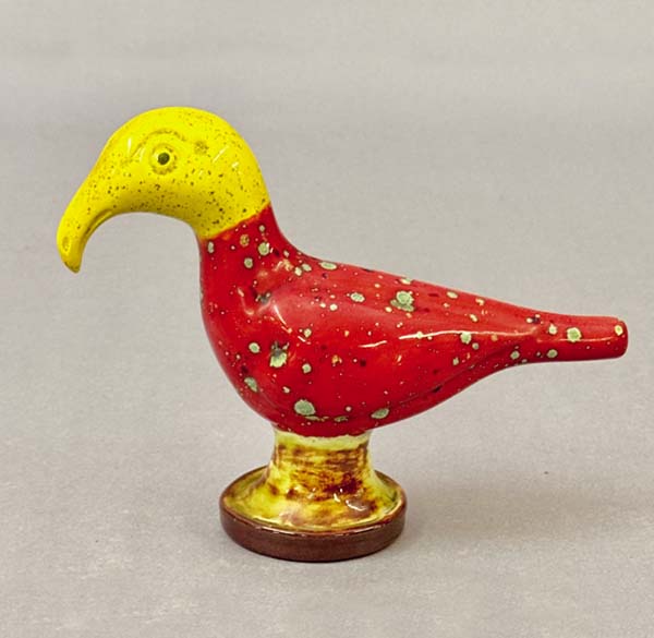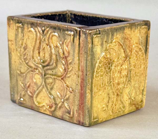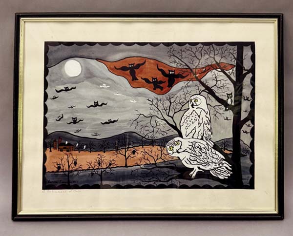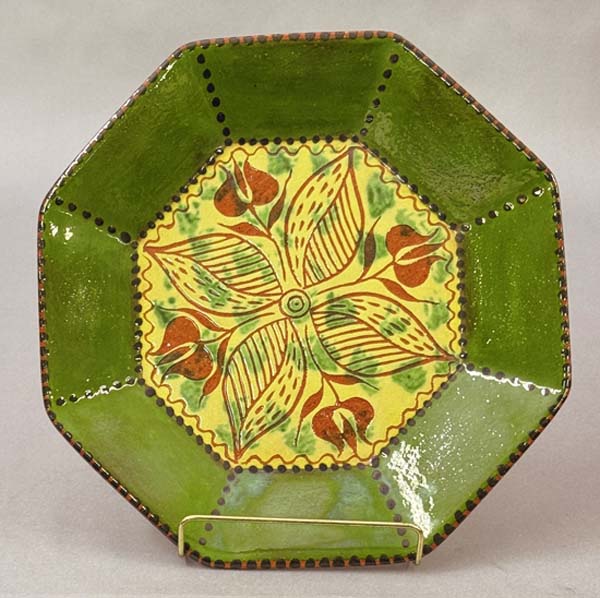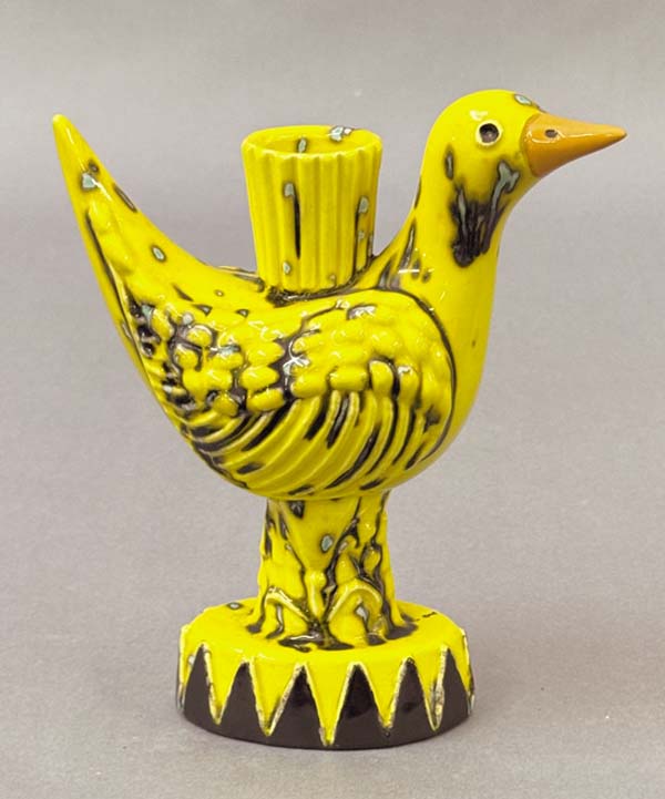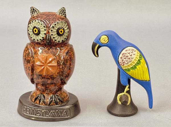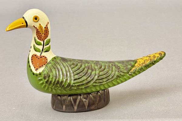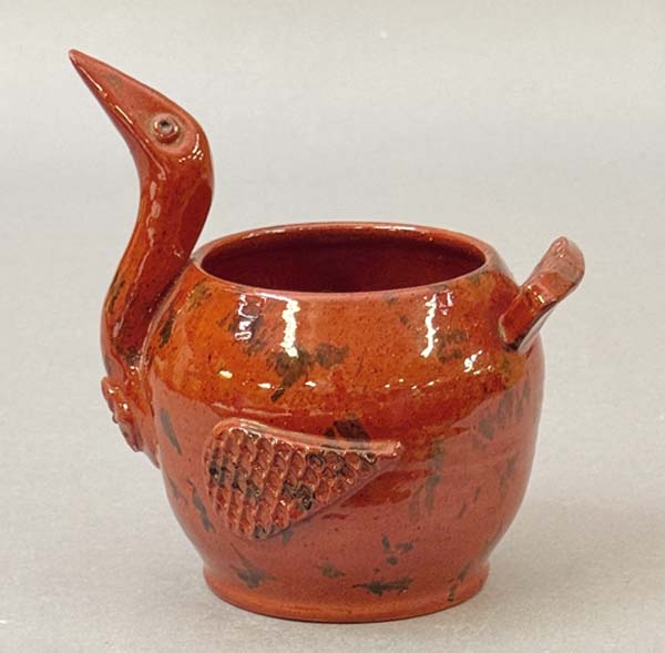 James Christian Seagreaves (1913-1997) and wife Verna Seagreaves (1913-2000) were a powerhouse team of folk artisans from Breinigsville, Pa. Jim, a redware potter, and Verna, a watercolor artist, produced Pennsylvania German art sought after in todays marketplace. An online sale by Zettlemoyer Auction Co. on Aug. 26 had a large offering of their work. Prices realized were all over the map, reflecting the wide range of work done. As a group, both the pottery and watercolor paintings sold well. The large grouping was consigned by family members of Ruth Seagreaves Hichar, who was Jims sister. She passed away in 2015. Father/son team of Woody and Eric Zettlemoyer are not strangers to Seagreaves folk art. In 2018, they held three sales on behalf of Jim and Vernas daughter, Claudia, who lives in Colorado and was downsizing. They also sold the couples folk art on behalf of the family following Vernas passing in 2000. Examples of both common and unusual forms of Jims redware have cooled from the high watermark heyday of the 1990s, yet still have a sizable following. His pottery can be found at online marketplaces such as Etsy or eBay. The artistic couple married in 1941, first living in Alburtis, Pa., until 1961, when they moved to Breinigsville. In 1966, the Seagreaves joined the Reading-Berks Chapter of the Pennsylvania Guild of Craftsman. Jim was a revivalist potter who also worked as a machinist for much of his career. Making redware pottery was technically his second career upon retirement in 1976, although he began potting long before. Jim was exempted from the draft during World War II because his work at the Bethlehem Steel plant was considered essential to the war effort. Later, he worked at Air Products and Chemicals, Inc. Seagreaves was known for his characteristic blending of styles that incorporated motifs and forms, techniques used by traditional Pennsylvania German potters and also that of modern 1950s ceramic art. He was especially known for press molding figural birds and using vibrant, brightly colored glazes. However, Seagreaves was also prolific on the wheel, where he turned mugs, bowls, and fat lamps, among other forms. He was also known for his skillful sgraffito decorating. According to the late regional historian Richard Orth, Seagreaves began experimenting with making redware pottery in the late 1940s. The mentioned press-molded birds were cast from original molds he created. Following his death, the majority of molds were destroyed to prevent reproductions. Aside from the molded work, he was very skilled at creating hand-built work. Among the rarer items he created were face jugs, fish whistles, figural dogs and people. In the late 1950s and early 1960s, he signed his work with initials JS, soon changing to JCS due to the fact a period potter (John Snyder of Mohrsville, Berks County) used the initials JS, and Jim wanted to both stand alone and not take the risk of having pieces being passed off for non-contemporary. The bulk of his redware pottery is signed JCS. Verna (1913-2000) was a skilled folk painter, but unlike Jim never produced her artwork on a prolific scale. She was a music teacher by profession, teaching in the Alburtis and East Penn School District, from which she retired. She was also the organist and choir director for 28 years at Zion Lehigh Lutheran Church in Alburtis, and also for the Church of the Good Shepherd in Alburtis. She was a watercolorist for roughly 40 years. Self-taught, Verna mainly worked in the Grandma Moses style of folk painting. Her work was exhibited in 1999 at the Historical Society of Berks County (now the Berks History Center). Like her husband, Vernas artwork is known for the use of bright vivid colors. She also assisted Jim in his pottery studio. She often signed pieces with her initials, VAS, and also Verna. Several of her Zuni and Pueblo-design inspired pottery were in this online auction. The inspiration for the style came from a trip the two took to the American Southwest. Vernas watercolors are deserving of recognition among folk art circles. The photos showcase a few of the unusual highlights. Prices reported include a 17 percent buyers premium. For further information, call Zettlemoyer Auction Co. of Fogelsville, Pa., at 610-395-8084.