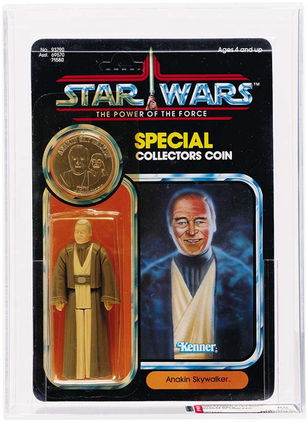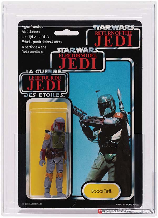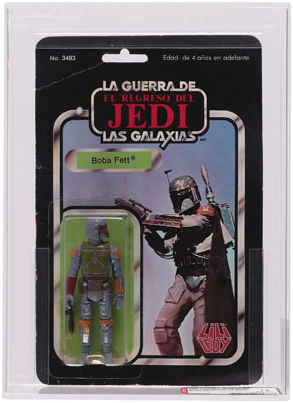If ever there were a doubt as to the identity of the most popular character in the Star Wars universe, Hakes Oct. 16 auction ended the debate once and for all. With strong competition from both the marquee names and more-obscure personalities inhabiting George Lucas immortal franchise, one larger-than-life figure stepped forward to claim three of the top 10 positions at the $900,000 auction: Boba Fett. Action figures depicting the formidable, eerily untalkative bounty hunter attracted heated competition in the high-profile sale, which exclusively featured Part III of the Jeff Jacob collection. Earlier this year, Hakes auctioned Parts I and II of Jacobs prized action figure holdings. So far, the collection has raked in $3.55 million, with more offerings to come in 2026. The sale was led by the auctions cover piece, a Lili Ledy Spanish-language Star Wars: Return of the Jedi/La Guerra de las Galaxias: El Regreso del Jedi (1983) Boba Fett 30 Back AFA 75 Ex+/NM action figure. A dark-armor variety standing 3.75 inches tall with a fixed rocket, this toy was pursued for 20 years before joining Jeff Jacobs legendary Star Wars trove. It is the highest-graded of only three examples to be AFA-graded and was the first carded example of its type ever to be offered at auction. It rocketed to $77,885, a world-record price for any production Boba Fett action figure. Several other figures landed at the top of prices realized, including a Kenner Star Wars: The Power of the Force (1985) Anakin Skywalker 92 Back action figure with its matching aluminum collector coin. AFA-graded 85 Y-NM+, it presented on an unpunched card with a yellow blister and archival case. The only other time Hakes had offered an example of this figure in such a high grade was at the July 2018 auction of the Russell Branton collection. According to the AFA Population Report, only one figure of this specific type exists in a higher grade, which undoubtedly encouraged bidders to give it their best shot. Against an estimate of $10,000 to $20,000, the auction entry sold for a world-record price of $24,015. A factory-sealed Kenner Star Wars: The Empire Strikes Back (1980) Darth Vader 32 Back Collectors Case, a special-offer item, was AFA-graded 75 EX+/NM and came with Boba Fett, IG-88 and Bossk bounty hunter figures. The carrier case was designed with the capacity to hold up to 31 Kenner Star Wars action figures, so it gave youngsters quite an incentive to add new acquisitions to their collections on birthdays or holidays. Only six collectors cases of this particular type (with bounty hunter figures) have been graded by AFA, per the current AFA Population Report, and of those, only three are AFA-graded 75, with only one graded higher. Jeff Jacobs case was only the second factory-sealed example Hakes had ever handled. It sold above its high estimate for $23,365, a world-record price for a toy of its particular type. Boba Fett reappeared, but in a larger size, as a Kenner Star Wars: The Empire Strikes Back (1980) figure from the 12-inch Series. When introduced, the oversize series didnt catch on with Star Wars fans, who preferred the smaller figures. Production of the 12-inch Series was scaled back, ultimately making figures like the Boba Fett quite scarce, especially in such high-grade condition. Housed in its window box, the toy was AFA-graded 85 NM+, one of only four examples in that grade with none higher, according to the current AFA Population Report. Against an estimate of $5,000 to $10,000, the foot-tall Boba sold for world-record price of $17,700. Making it a Boba Fett trifecta within the top 10, a Palitoys Star Wars: Return of the Jedi (1984) Boba Fett Tri-Logo 70 Back-B, AFA 85 NM+, in a French Meccano-style blister, was released with English, Spanish and French text to accommodate a multinational fan base. However, the auction example proved to be a rarity over time. According to the current AFA Population Report, it is one of only two examples known in an AFA 85 grade, with none graded higher. It concluded its bidding run at the upper end of its estimate range at $16,875. Ordinarily a dark character, Darth Vader stepped out of his iconic role as a villain long enough to take a bow in the auction spotlight in the form of a Star Wars (1978) 12 Back-C AFA 85 NM+ action figure. Measuring 4.25 inches tall on an unpunched blister card, this toy had condition going for it, since a mere three examples have ever been graded higher, per the current AFA Population Report. It sold for $7,855 against an estimate of $2,000 to $5,000. Jeff Jacobs collection was also the source of many rare GI Joe action figures and toys in exceptionally fine condition. The top-selling Joe lot was a Hasbro Dreadnok Ground Assault Series 5 Vehicle with rockets and motorcycle with cannon. AFA-graded Qualified 75 Q-EX+/NM in a profusely pictorial box, this set fired up the imagination of many a junior Army hero when it was issued as a Sears exclusive in 1986. At Hakes, it sold for $5,840 against an estimate of $1,000 to $2,000. For more information, call 1-866-404-9800 (toll-free) or 717-434-1600 or visit www.hakes.com. All images courtesy of Hakes Auctions.