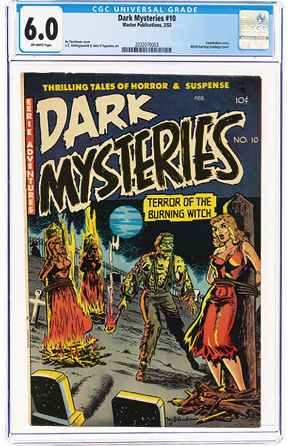 Heritage Auctions March 13 Horror Comics Showcase Auction realized $161,965 across 118 lots, achieving a 100 percent sell-through rate and drawing participation from 451 bidders, a strong showing for the ever-popular Horror Comics genre. Many of the comics offered dated to the pre-Comics Code era, when horror titles flourished before the Comics Code Authority was introduced in 1954. The genre was among those most heavily scrutinized during the eras public debate over comic books, making surviving examples from the earlier period particularly desirable among collectors today. Heritage Auctions has hosted numerous Horror Comics Showcase auctions in recent years, reflecting the genres growing collector base. Pre-Code horror continues to resonate with collectors because the material is so visually striking and historically significant, said Rick Akers, vice president of comics and comic art at Heritage. These books capture a moment when artists pushed boundaries, and collectors clearly respond to that. The top lot in the sale was Witches Tales #25 File Copy (Harvey, 1954), graded CGC NM- 9.2, which realized $13,420 and set an auction record for the grade. Featuring a striking decapitation cover by Howard Nostrand, the issue represents one of the highest-graded copies Heritage has encountered, with interior story art by Nostrand and Bob Powell. Black Cat Mystery #37 (Harvey, 1952) CGC VF- 7.5, with a skull-and-graveyard cover by Warren Kremer, realized $7,320, an auction record for the grade, and Dynamic Comics #11 (Chesler, 1944) CGC GD/VG 3.0, featuring a classic cover by Gus Ricca and art by George Tuska, brought $5,368. Crime SuspenStories #22 (EC, 1954) CGC VG- 3.5, the infamous decapitation cover by Johnny Craig, famously cited during the U.S. Senate investigation into comics and juvenile delinquency, sold for $5,124. The issue ranks #1 on Overstreets Top 10 Crime Comics list and includes art by Reed Crandall, Bernie Krigstein, Joe Orlando and Jack Kamen. Dark Mysteries #10 (Master Publications, 1953) CGC FN 6.0 realized $4,392, setting an auction record for the grade. The issue features a dramatic witch-burning cover by Hy Fleishman and interior art by Al Hollingsworth and John DAgostino. The auction also produced additional record results for specific CGC grades, underscoring the strength of the Horror Comics market. Some of those records included Witches Tales #22 File Copy (Harvey, 1953) CGC VF+ 8.5, with a zombie-filled subway cover by Lee Elias, realizing $2,684, an auction record for the grade, and Witches Tales #21 File Copy (Harvey, 1953) CGC VF+ 8.5, featuring a cover by Lee Elias, realizing $2,318, an auction record for the grade. The results reflect continued enthusiasm for pre-Code horror comics, one of the most distinctive and historically significant areas of comic-book collecting. Additional results from the March 13 Horror Comics Showcase Auction can be found by visiting www.HA.com.