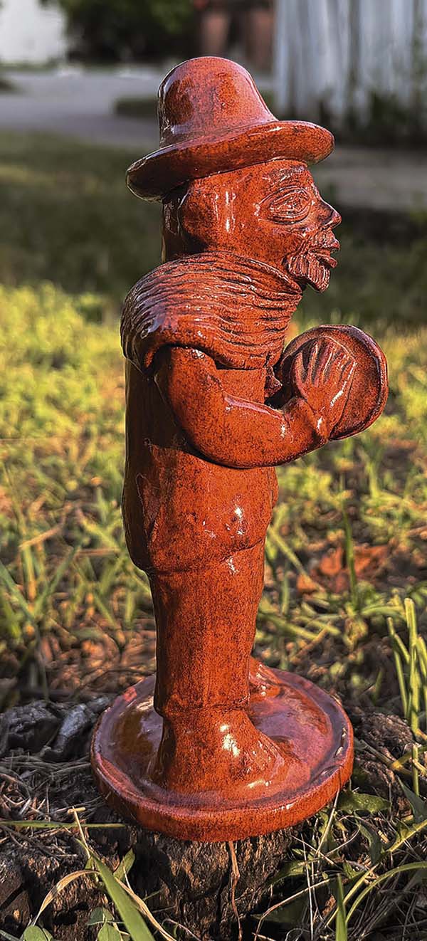 The term hobo was coined in America sometime about 1890 when a depressed economy and hard times had people taking to the rails in search of work and a better life. A simple definition of the word describes a hobo as a migrant worker or a homeless journey person, but they are not a bum. The word may have derived from hoe-boy meaning farmhand or from a greeting like Ho, boy! Other possibilities are that it comes from the railroad greeting Ho, beau! or that it is an abbreviation of homeward bound or homeless boy. It is believed that the early hobos came into existence after the American Civil War with many veterans hopping freight trains home. Men also hopped trains heading west to look for work. By 1906, there were roughly half a million hobos living in America, and by 1911, there were 700,000. The Great Depression also resulted in a large increase in hobos. This lifestyle was also published for comedic entertainment in newspapers in the early 1900s, such as one account that was included in various American newspapers in 1905: If you see a streak headed for Ohio that looks like a hoboe on the run thats him. He has heard that a receiver of a brewery out there has turned the beer away rather than pay the revenue tax on it, and he wants to get it at the finish. However, as the decades passed, the idea of the hobo became a part of American popular culture, whereas there were musical programs that would include appearances from washboard hoboe entertainers. Some outdoor activities were advertised in newspapers in the 1930s and 1940s as hoboe hikes, and amateur baseball teams even adopted the hobo as part of their team name, such as the New England Hoboes, the Boston Hoboes and the Pittsburg Hobos. Some of these teams also traveled around participating in several war effort fundraising games during WWII, where many of the athletes were former college baseball players. But life as a hobo was difficult. The travelers were poor, hungry, and faced hostility from train crews and railroad security staff known as bulls. Hopping on and off moving trains was also very dangerous. It was easy to get trapped between cars, and in bad weather, it was entirely possible to freeze to death. An ethical code was created by Tourist Union #63 during its 1889 National Hobo Convention in St. Louis, Mo. This code was voted upon as a concrete set of laws to govern the Nation-wide Hobo Body; it reads 1) Decide your own life, dont let another person run or rule you. 2) When in town, always respect the local law and officials and try to be a gentleman at all times. 3) Dont take advantage of someone who is in a vulnerable situation, locals or other hobos. 4) Always try to find work, even if temporary, and always seek out jobs nobody wants. By doing so you not only help a business along, but ensure employment should you return to that town again. 5) When no employment is available, make your own work by using your added talents at crafts. 6) Do not allow yourself to become a stupid drunk and set a bad example for locals treatment of other hobos. 7) When jungling in town, respect handouts, do not wear them out; another hobo will be coming along who will need them as badly, if not worse than you. 8) Always respect nature, do not leave garbage where you are jungling. 9) If in a community jungle, always pitch in and help. 10) Try to stay clean and boil up wherever possible. 11) When traveling, ride your train respectfully, take no personal chances, cause no problems with the operating crew or host railroad, and act like an extra crew member. 12) Do not cause problems in a train yard; another hobo will be coming along who will need passage through that yard. 13) Do not allow other hobos to molest children and expose all molesters to authorities; they are the worst garbage to infest any society. 14) Help all runaway children and try to induce them to return home. 15) Help your fellow hobos whenever and wherever needed; you may need their help someday. 16) If present at a hobo court and you have testimony, give it. Whether for or against the accused, your voice counts! Hobos were also often represented in American folk art in the late 19th and early 20th century, such as jail carvings, grips carved on wooden walking canes and even paintings. They were also depicted on 20th-century parade masks and even band drums. Furthermore, some believe that tramp art, a means of folk art that emerged in the latter part of the 19th century, was created by hobos. Some of it may have been, although it was more of an art form that used raw materials to construct different objects, which a countless number of men, woman and children created all over the world. Interestingly, I recently came into the possession of a late 19th- or 20th-century red earthenware figure of what appears to be a hobo playing a tambourine. The manufacturer is unknown, but it retains some 20th-century ownership history in Pennsylvania. The bare-footed figure is completely hand-modeled, wearing a scarf around his neck, and placed atop his head is the style of hat commonly worn by hoboes in the late 1800s and 1900s. Figures of hoboes are also known in some end-of-the-day type sewer tile production, such as one example that was owned by Ohio antiques dealer David Good, which later sold as part of the estate of Peter Tillou at Pook & Pook on April 21, 2022. That figure was a more traditional looking hobo, where the man was wearing a hat and carrying a bag with a wooden stick. A second sewer tile hobo is known that was made by Roy Blind (1924-2003) in Ohio in 1977, a noted sewer tile folk artist, which I wrote a feature story about in the Dec. 16, 2022 issue of Antiques & Auction News, titled, Roy Blind: A World War II Veteran And Sewer Pipe Folk Artist From Ohio. One other notable type of folky production is the hobo nickel made from a Buffalo Nickel, which was issued between 1913 and 1938, and hand-carved by a hobo creating a new original image on the coins face. The practice of
