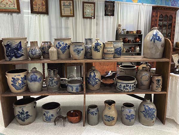 The Spring edition of the Elverson Antique Show was held March 22 and 23 for the second time in its new location, the Honey Brook Elementary School. In its 60-year history, the show has moved from its original location in the Elverson Firehouse to Twin Valley High School and now its present location.Honey Brook is a small borough in Chester County, a 10-minute drive from Elverson and off the Morgantown exit of I-76. Nestled on a ridge between the east and west branches of the Brandywine Creek, Honey Brook is in close proximity to Lancaster and Berks Counties.It provides visitors with an opportunity to shop for antiques that reflect the rich heritage of the area and has become one of the regions premier antique shows. The majority of the 40-plus dealers are from Pennsylvania, with others coming from Ohio, Indiana, Virginia, New Jersey, and New York. One dealer comes from Vermont. Categories such as stoneware, redware, folk art, furniture, fraktur, paintings, quilts, coverlets, butter prints, baskets, toys, painted smalls, historical china, and advertising were well-represented. The layout of the show, utilizing the gym, cafeteria, and adjoining hallways, led shoppers through well-designed attractive booths as they searched for that unique item to add to their collections. The opening crowd was strong on the first day as dealers welcomed old customers and interacted with those new to attending an antiques show. Dealers enjoyed meeting new customers and answering their questions about the items. Prices ranged from $10 to five figures; there was something for everyone. Taking a break from shopping, patrons were able to sit and enjoy sandwiches from the food truck at the show. For those who want to experience the atmosphere of a small show with outstanding antiques at affordable prices and friendly dealers, the Elverson Antique Show is a cant miss show. The majority of dealers reported good sales, indicating a healthy marketplace. Photos representing some of the items for sale at the show accompany this story. The Fall show will be back at the Honey Brook Elementary School on Saturday and Sunday, Nov. 1 and 2. For further information see the shows Facebook page, website, or call 707-310-4488.