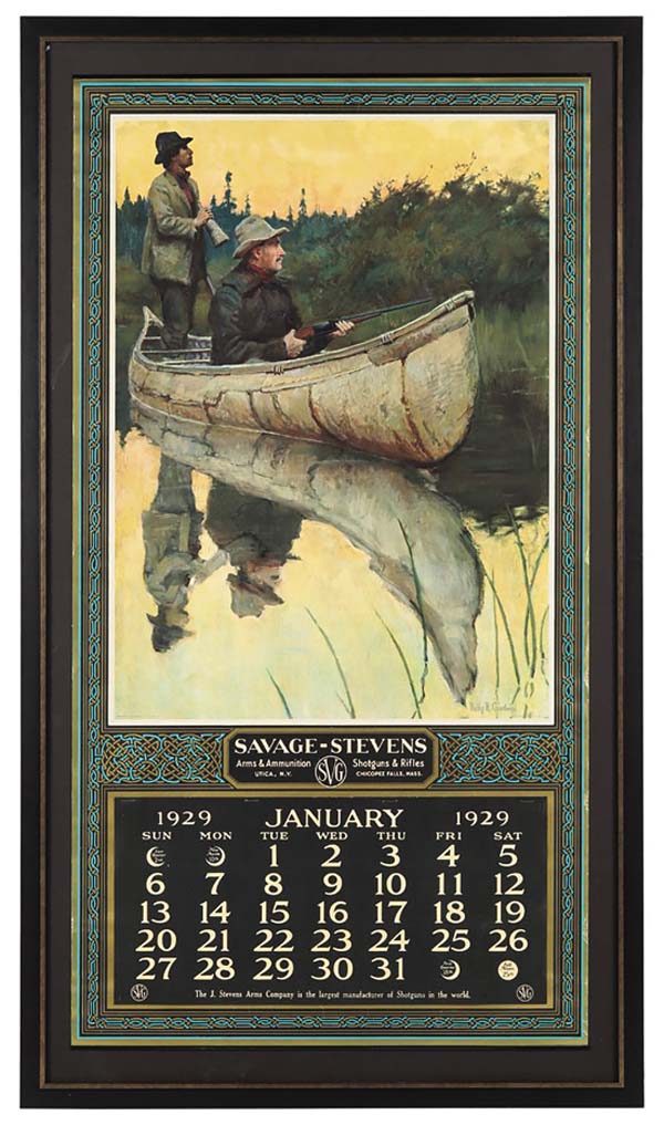 Three antique Winchester cartridge display boards from around the turn of the century combined for nearly $200,000 in an online-only Firearms and Sporting Auction, featuring the collections of Wayne G. Connor and the late Robert Warwick, held March 29 by Miller & Miller Auctions Ltd. In all, 211 lots came up for bid. All prices quoted in this report are in Canadian dollars and include an 18-percent buyers premium. The sale was packed with early and rare firearms art and advertising, store displays, factory cartridge boards, fine Winchester rifles and shotguns, Colt percussion revolvers, flintlocks, Smith & Wesson cartridge revolvers, North American trade muskets, decoys, factory reloading tools, scarce ammunition boxes, and a sprinkling of iconic military rifles. The American-made Winchester cartridge boards were the overall top three lots of the auction, with each one easily surpassing its high estimate. They included a Winchester 1888 Inverted V cartridge display board, slightly altered from the 1886 introduced version by the addition of two additional rifle cartridges, the .38-56 WCF added on the left side above a primer tin and the .40-60 WCF added on the right side. It realized $100,300. An 1897 Winchester Double W cartridge display board No 291, an oak framed lithographed backboard with the Winchester Repeating Arms Company displaying dummy inert samples of all the pistol and rifle cartridges and shotgun shells then being produced in their New Haven factory, brought $79,650. A Winchester 1902 Double W cartridge board lithograph, the last of the early cartridge boards, entirely made up in a paper version and, unlike its predecessor 1897 board, no dummy cartridges attached, was also sold. These 1902 boards dont show up as often as the 1897 boards and are rarer. It sold for $18,880. It was a pleasure to handle the longtime collections of Wayne Connor and Robert Warwick, along with many other great individual consignments. The auction was a huge success, with excellent results across all categories. In advertising, some fine examples stand out. We now look forward to the next firearms auction, remarked Paul Matheson of Miller & Miller. The auction grossed $723,930, and 71 online bidders placed a combined 6,629 bids. Ninety-nine percent of all lots were sold, while 48 percent of the top 50 lots exceeded estimates. Online bidding was via LiveAuctioneers.com and the Miller & Miller website. An American-made Smith & Wesson factory engraved new model revolver with a factory letter confirming a December 1891 factory shipment, in a 44 S&W Russian caliber with 6.5-inch barrel, smooth pearl grips and a gold monogrammed S&W logo, hit the mark for $14,160. A 1929 Savage-Stevens Arms Companies calendar featuring artwork by Philip R. Goodwin, titled Calling Big Game, depicting a hunter with his Savage Model 9 rifle sitting in canoe while his guide is listening for a response to his moose calls, framed, went for $12,980. A ca. 1902 Deluxe Winchester model 1885 low wall sporting rifle, in .22 RF short caliber with No. 2 weight, a 26-inch octagonal and round barrel, the factory sights Lyman No. 5B combination front and Winchester No. 24 rear barrel sights, plus peep sight, rose to $11,210. A ca. 1863-65 New Haven Arms .44 caliber rimfire ammunition box for the Henry rifle, containing 50 copper case rim fire cartridges with raised H headstamp in a dished circle and loaded with 26 grains of black powder and a 216-grain flat-nose lead bullet, went for $10,030. A ca. 1967 Winchester Custom Shop (Custom Grade) model 21 SxS double barreled 20 gauge shotgun with 26-inch barrels sold for $10,030. After the Model 21 factory production halted in 1959, only around 1,000 total were made in three grades. A Winchester cased set of long range vernier and wind gauge rifle sights made for use on, but not limited to Winchester Model 1885 single shot target/sporting rifles, in original condition, in a Moroccan black leather case with gold lettering, green velvet lined, shot to $10,030. To learn more, visit www.MillerandMillerAuctions.com.