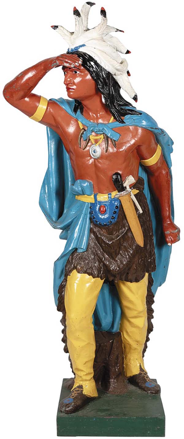 A Coin-Op and Advertising Sale was held by Potter & Potter Auctions on April 10. The 726-lot sale had a 91-percent sell-through rate. All prices reported include a buyers premium. The top lot was a zinc cigar store Indian in an elaborate headdress trading hands at $26,400. This male figure was 61 inches high and would be considered of vintage age, possibly antique, possessing later paint. It came from a collection of similar figures that were displayed outside a Wisconsin Dells souvenir shops, The Uptown Trading Post. Opening the sale was a Caille Bros. one cent Play Ball baseball countertop trade stimulator delivering $10,200. This ca. 1910 example featured an ornate nickel-plated cabinet decorated overall with baseball images and themes and retained its original reel strip and pay-cards. A Winged Wheel trade sign made $5,500. This tin sign was made in Cincinnati, Ohio, by the Edwards Mfg. Co. in the late 19th/early 20th century. A matching pair of handpainted and hand-cut plywood signs of female water skiers sold for $3,750. The women wore bikinis with tiaras and scarves and held tow-ropes. Each measured 62-by-52 inches, most likely used for outdoor ads or displays for Tommy Bartletts legacy Wisconsin Dells venue, which featured water skiing acrobats, magic and other variety acts at its location at Lake Delton. According to Joe Slabaugh, director of cataloging for Potter & Potter Auctions, Savvycollectors were out early and often during the auction, as top-quality lots such as a zinc cigar store figure attributable to Wm. Demuth shot well beyond our opening bids. To learn more, visit www.potterauctions.com.